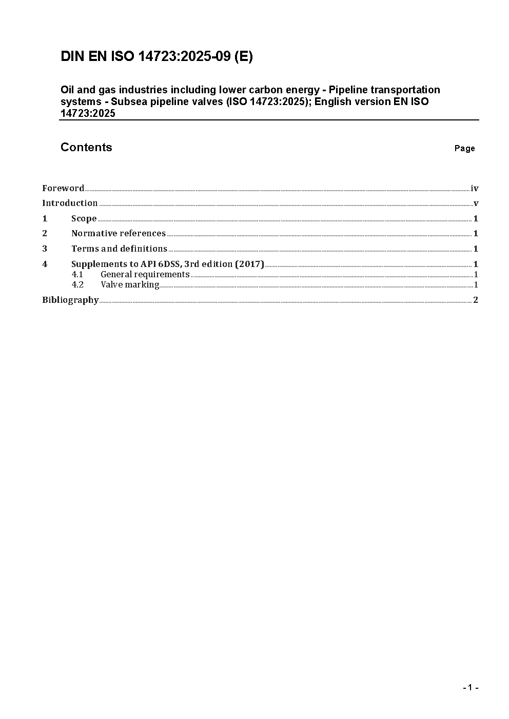 Erdöl- und Erdgasindustrie - Rohrleitungstransportsysteme - Unterwasserarmaturen (ISO/DIS 14723:2007)