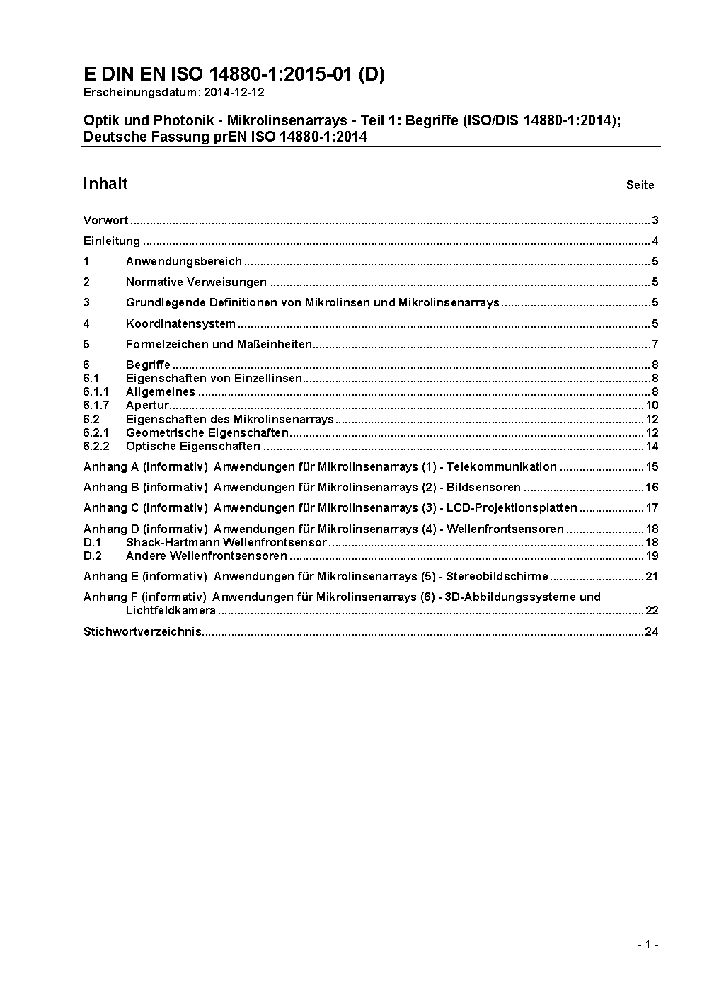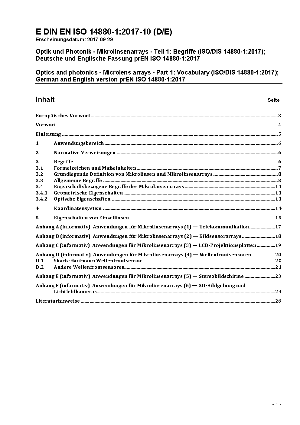 Microlens array - Part 1: Vocabulary (ISO 14880-1:2001 + Corr. 1:2003); German version EN ISO 14880-1:2005
