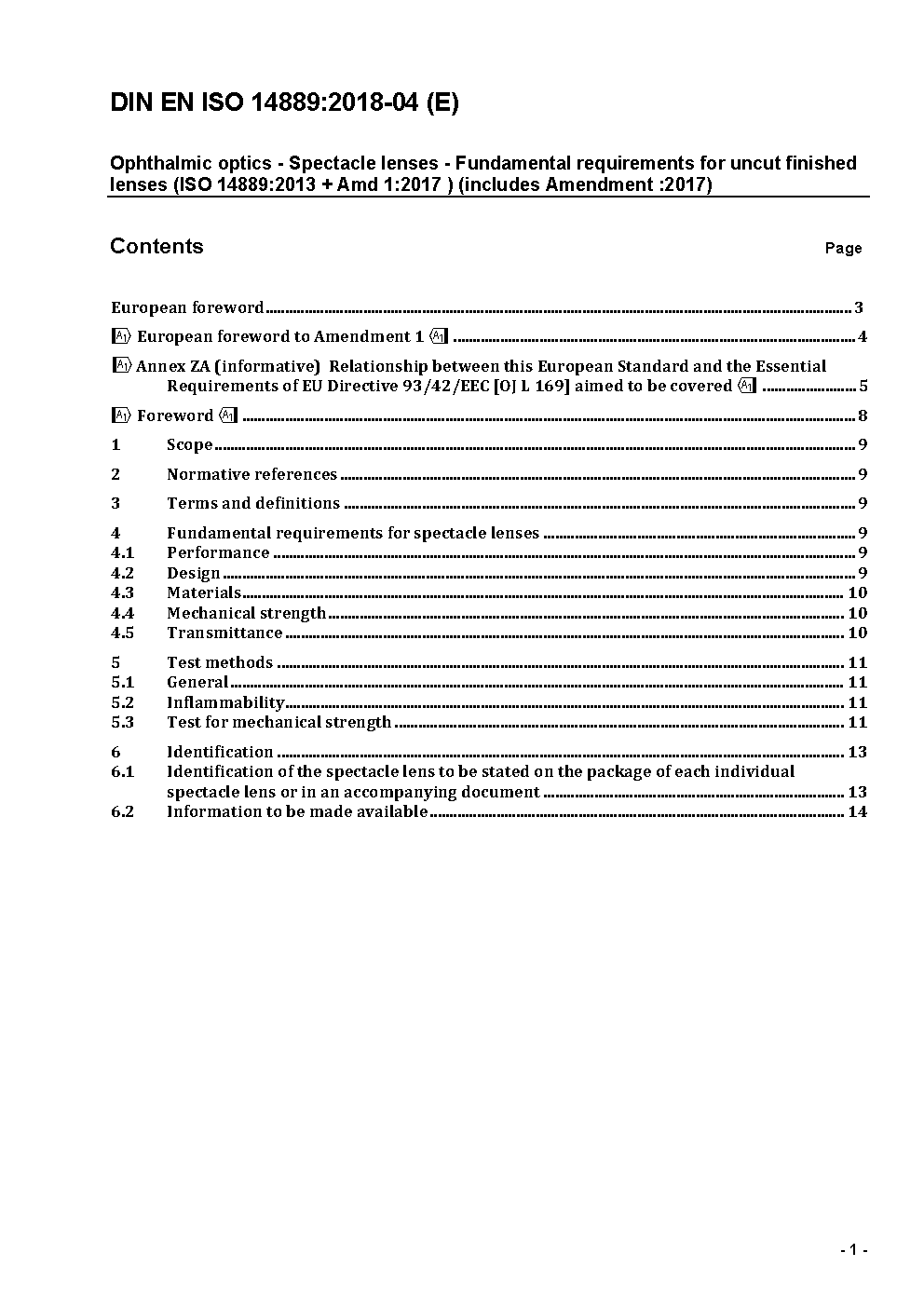 Ophthalmic optics - Spectacle lenses - Fundamental requirements for uncut finished lenses (ISO/DIS 14889:2023); German and English version prEN ISO 14889:2023