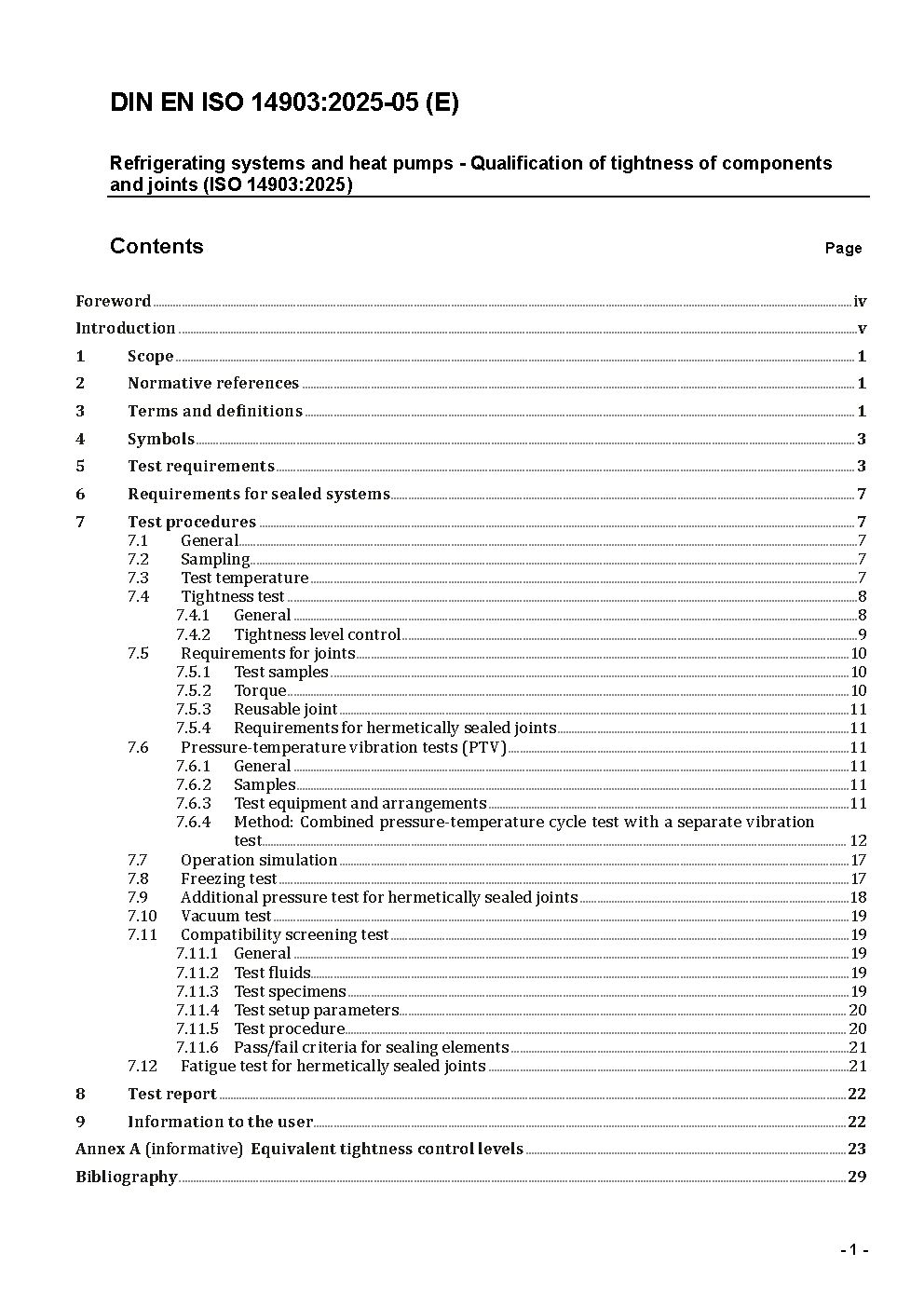 Refrigerating systems and heat pumps - Qualification of tightness of components and joints (ISO/DIS 14903:2023); German and English version prEN ISO 14903:2023