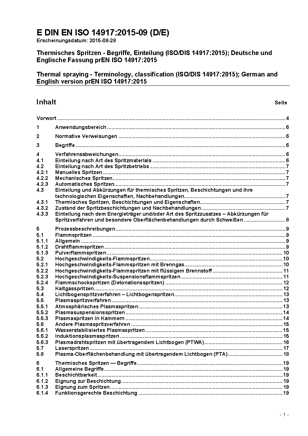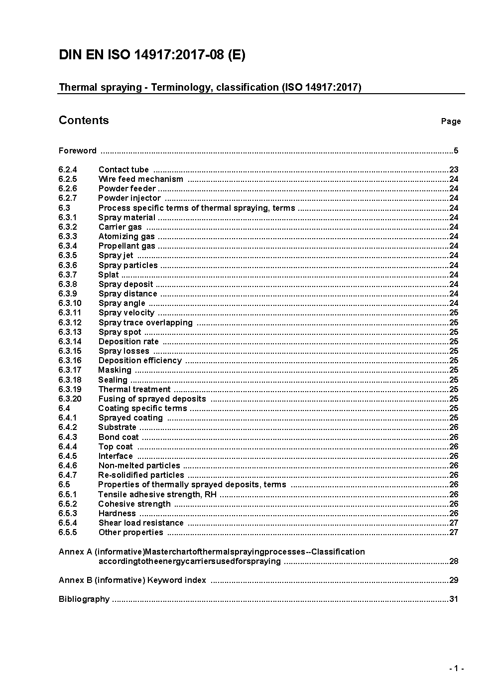 Thermisches Spritzen - Begriffe, Einteilung (ISO 14917:2017); Deutsche Fassung EN ISO 14917:2017