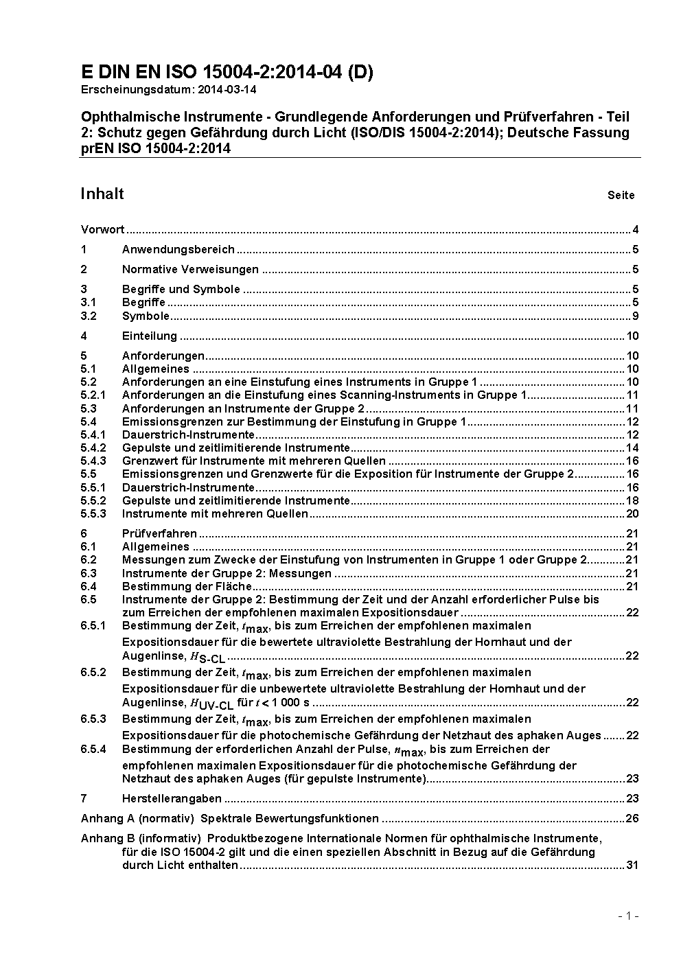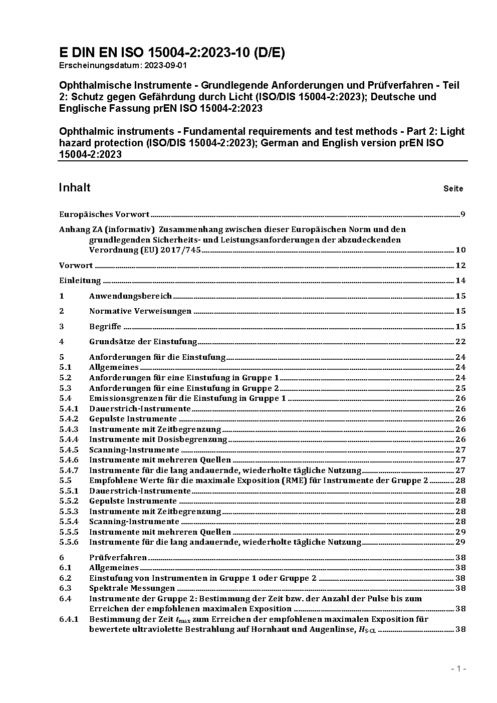 Ophthalmische Instrumente - Grundlegende Anforderungen und Prüfverfahren - Teil 2: Schutz gegen Gefährdung durch Licht (ISO/DIS 15004-2:2023); Deutsche und Englische Fassung prEN ISO 15004-2:2023