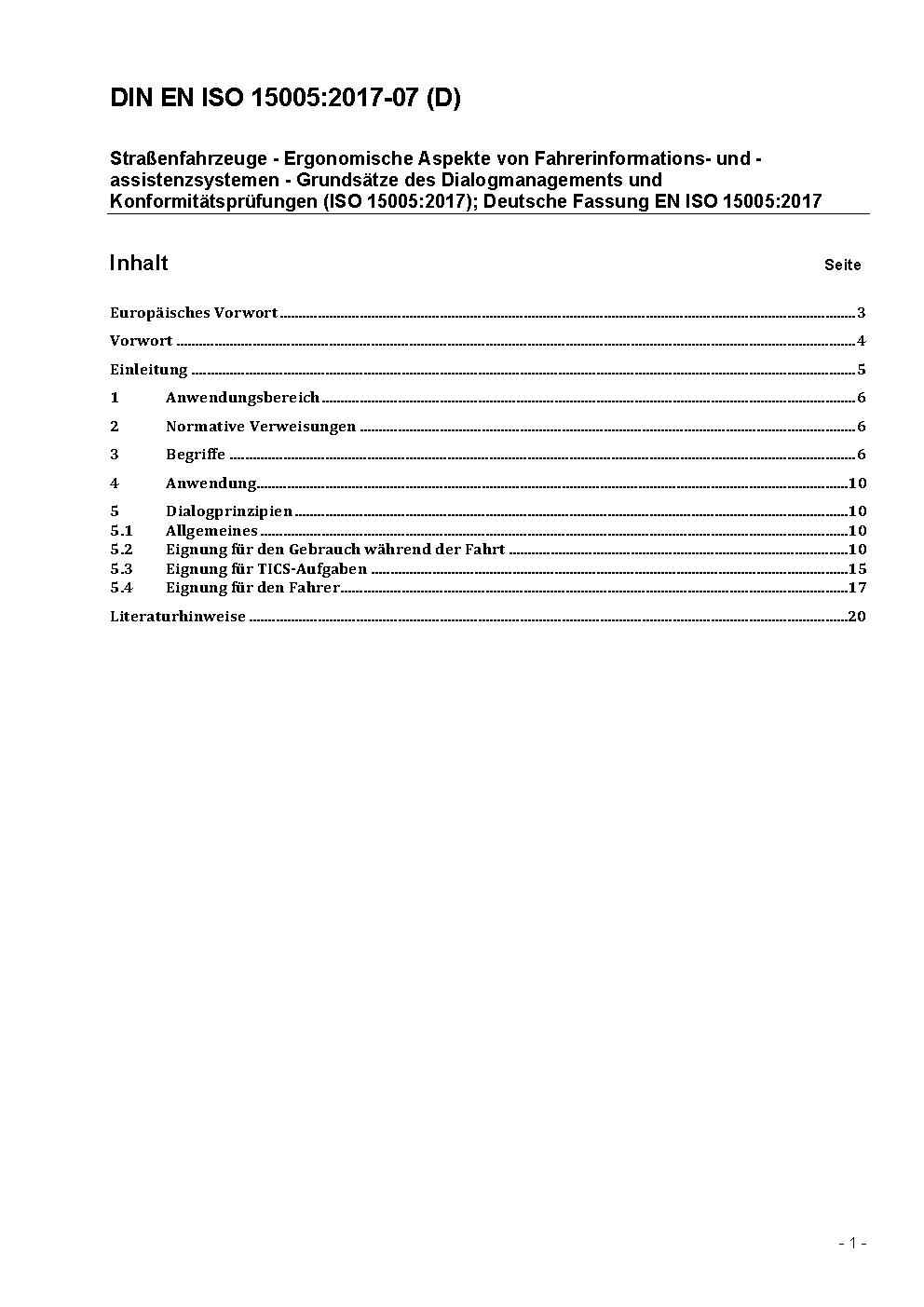 Straßenfahrzeuge - Ergonomische Aspekte von Fahrerinformations- und -assistenzsystemen - Grundsätze des Dialogmanagements und Konformitätsprüfungen (ISO 15005:2017); Deutsche Fassung EN ISO 15005:2017