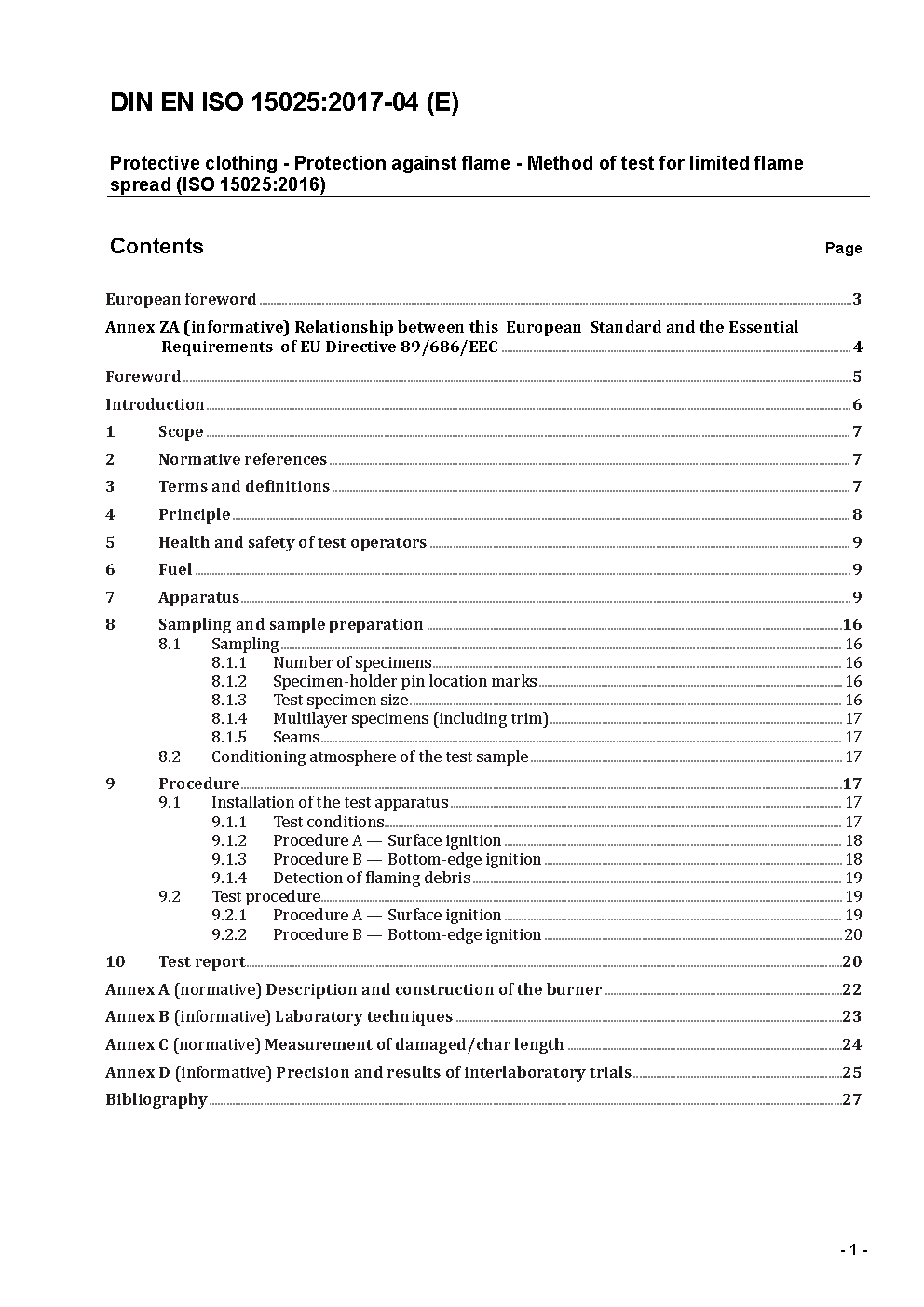 Protective clothing - Protection against heat and flame - Method of test for limited flame spread (ISO 15025:2000); German version EN ISO 15025:2002