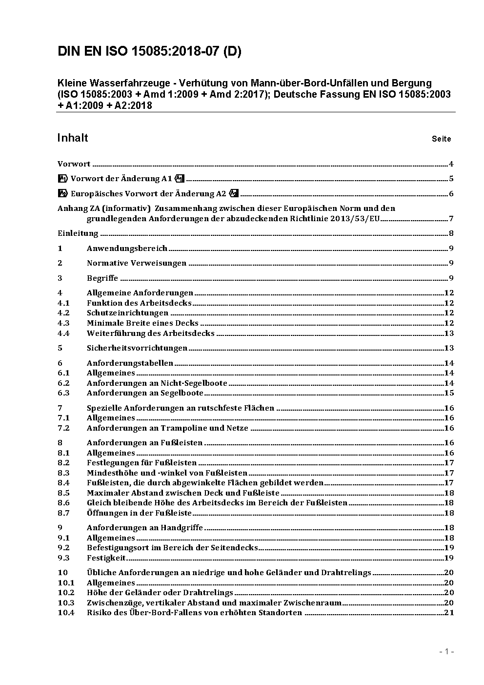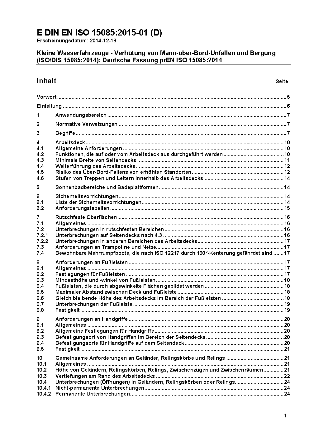 Kleine Wasserfahrzeuge - Verhütung von Mann-über-Bord-Unfällen und Bergung (ISO 15085:2003 + Amd 1:2009); Deutsche Fassung EN ISO 15085:2003 + A1:2009