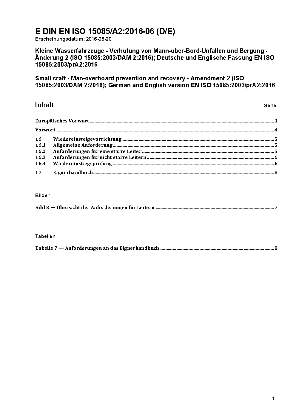 Small craft - Man-overboard prevention and recovery (ISO 15085:2003 + Amd 1:2009); German version EN ISO 15085:2003 + A1:2009