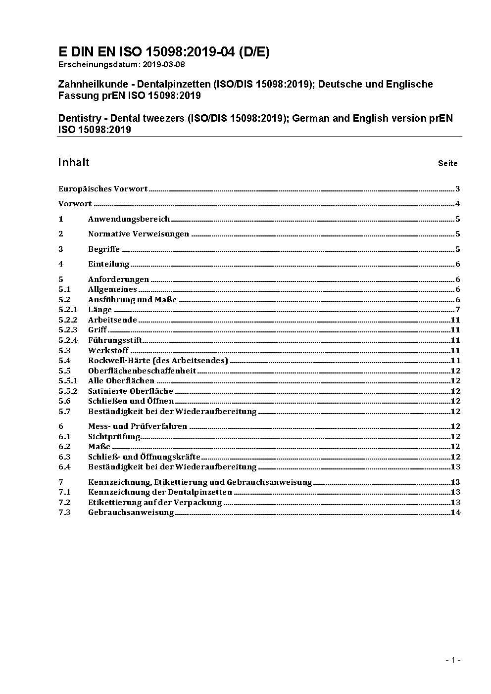 Dentistry - Dental tweezers (ISO/DIS 15098:2023); German and English version prEN ISO 15098:2023