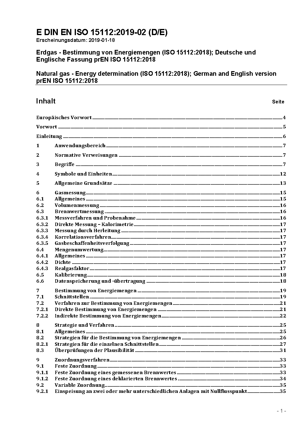 Erdgas - Bestimmung von Energiemengen (ISO 15112:2018); Deutsche und Englische Fassung prEN ISO 15112:2018