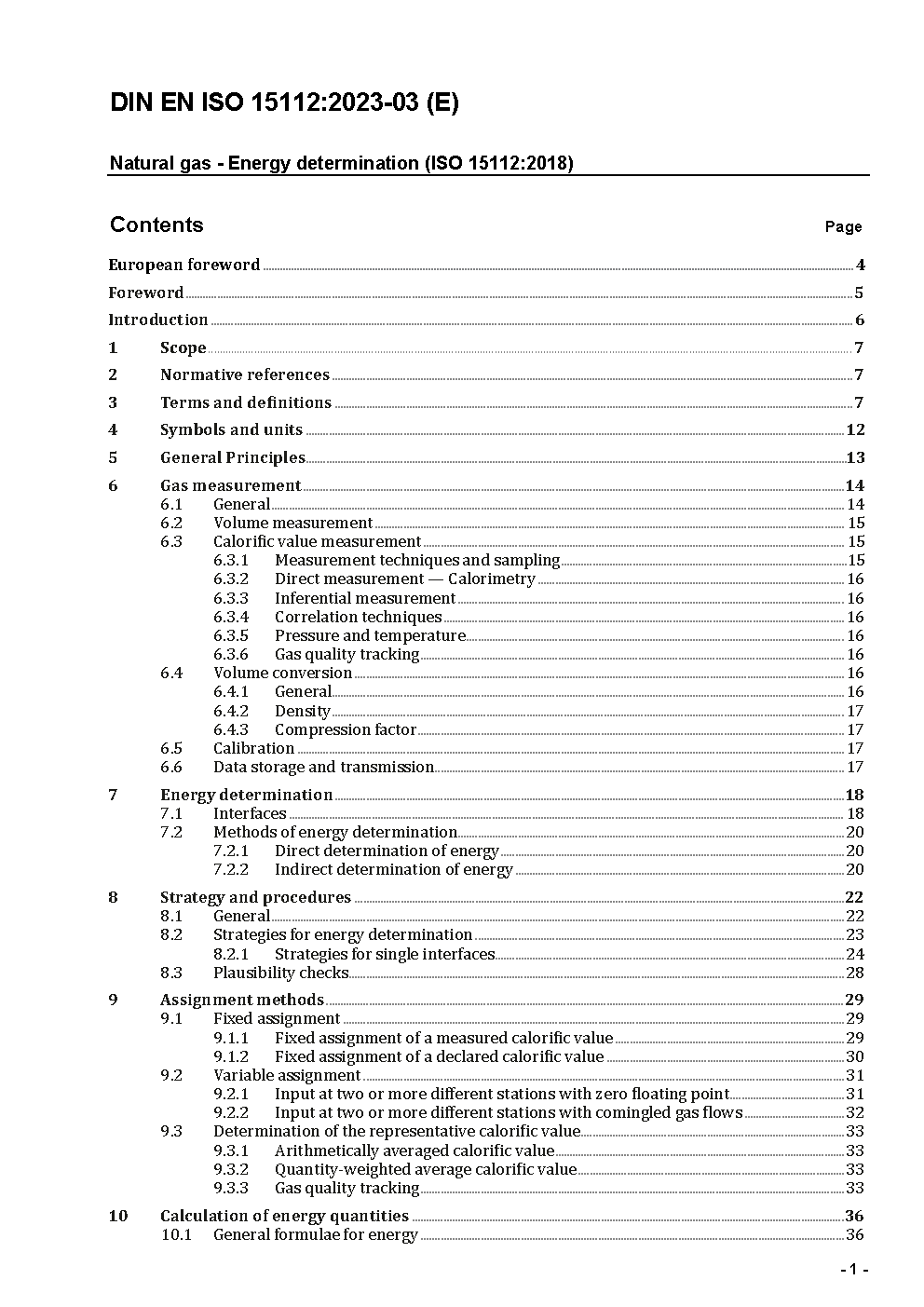 Natural gas - Energy determination (ISO 15112:2018); German and English version prEN ISO 15112:2018