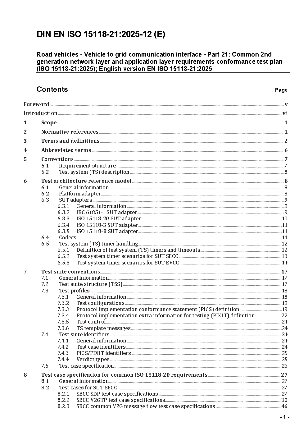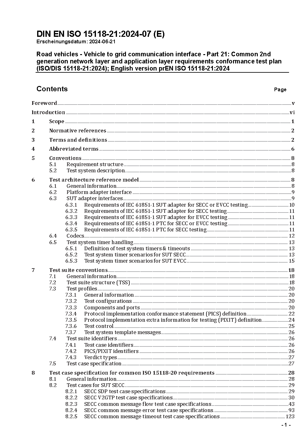 Straßenfahrzeuge - Kommunikationsschnittstelle zwischen Fahrzeug und Ladestation - Teil 21: Allgemeiner Konformitätsprüfplan für 2. Generation-Anforderungen an das Netzwerk- und Anwendungsprotokoll (ISO 15118-21:2025); Englische Fassung EN ISO 15118-21:2025