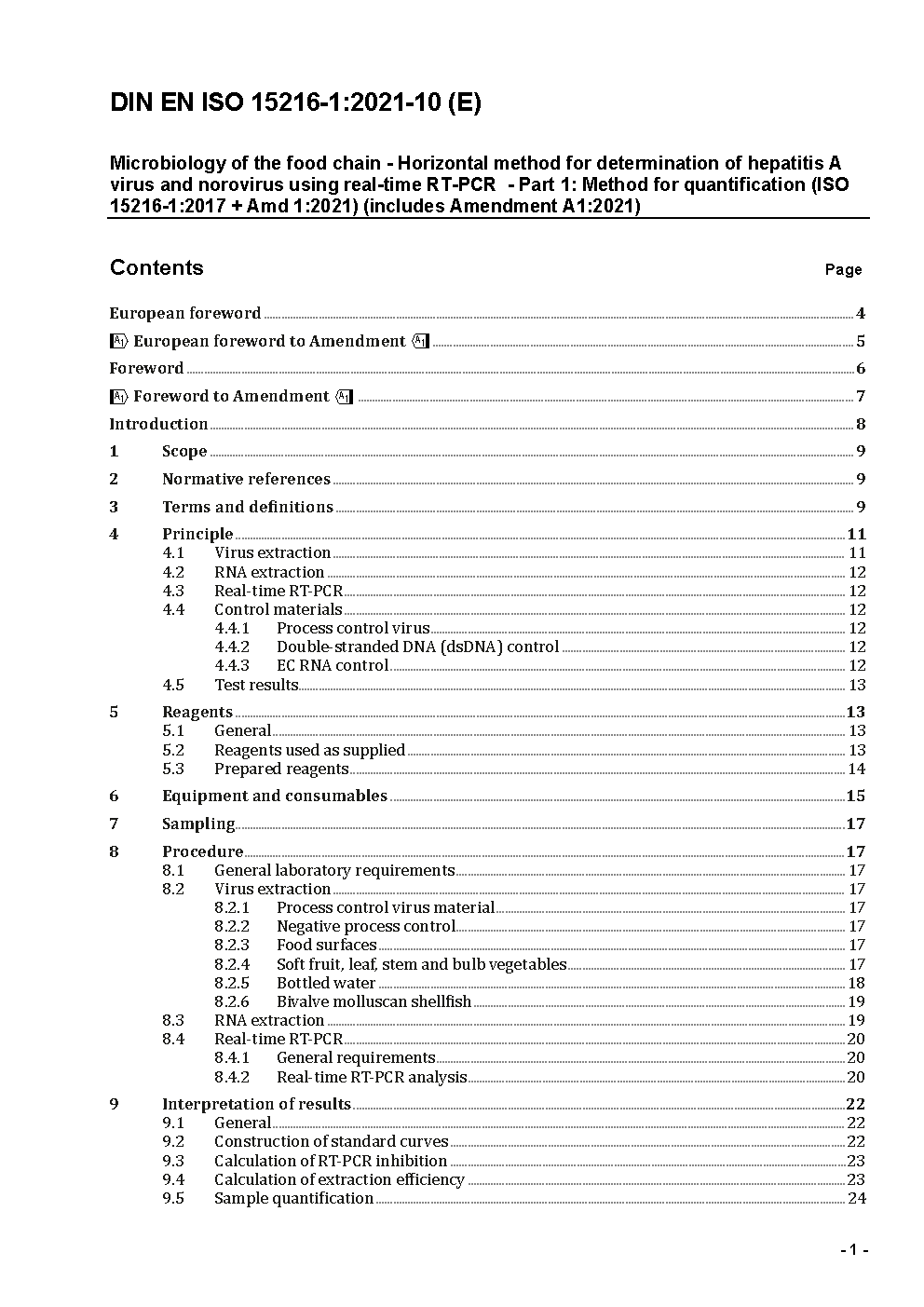 Microbiology of the food chain - Horizontal method for determination of hepatitis A virus and norovirus using real-time RT-PCR - Part 1: Method for quantification - AMENDMENT 1 (ISO 15216-1:2017/DAM 1:2020); German and English version EN ISO 15216-1:2017/prA1:2020