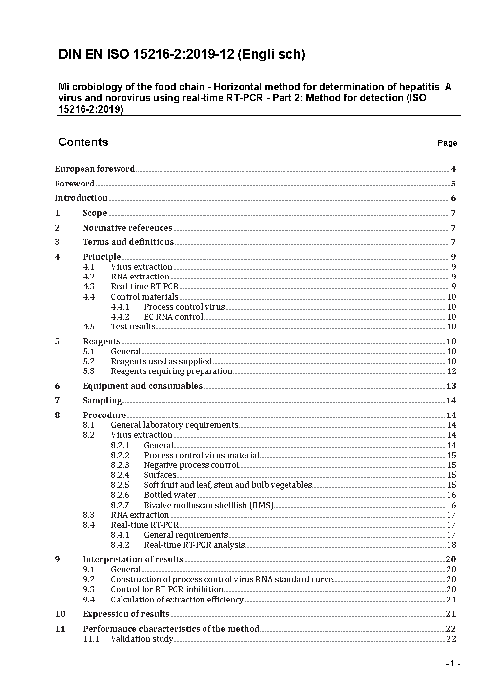 Microbiology of the food chain - Horizontal method for determination of hepatitis A virus and norovirus in food using real-time RT-PCR - Part 2: Method for detection (ISO/DIS 15216-2:2018); German and English version prEN ISO 15216-2:2018