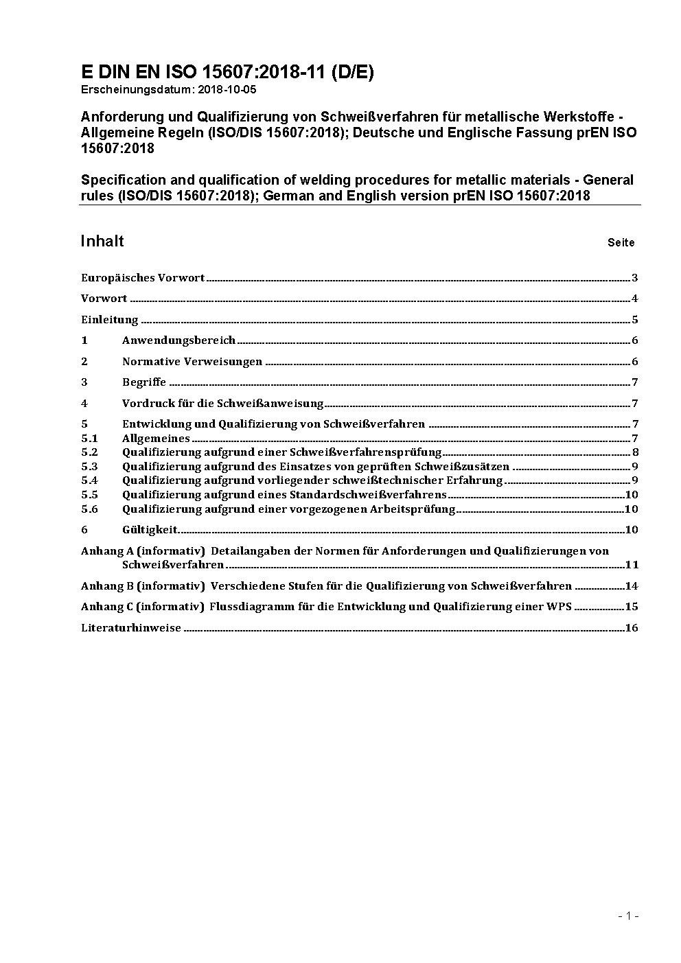 Anforderung und Qualifizierung von Schweißverfahren für metallische Werkstoffe - Allgemeine Regeln (ISO 15607:2003); Deutsche Fassung EN ISO 15607:2003