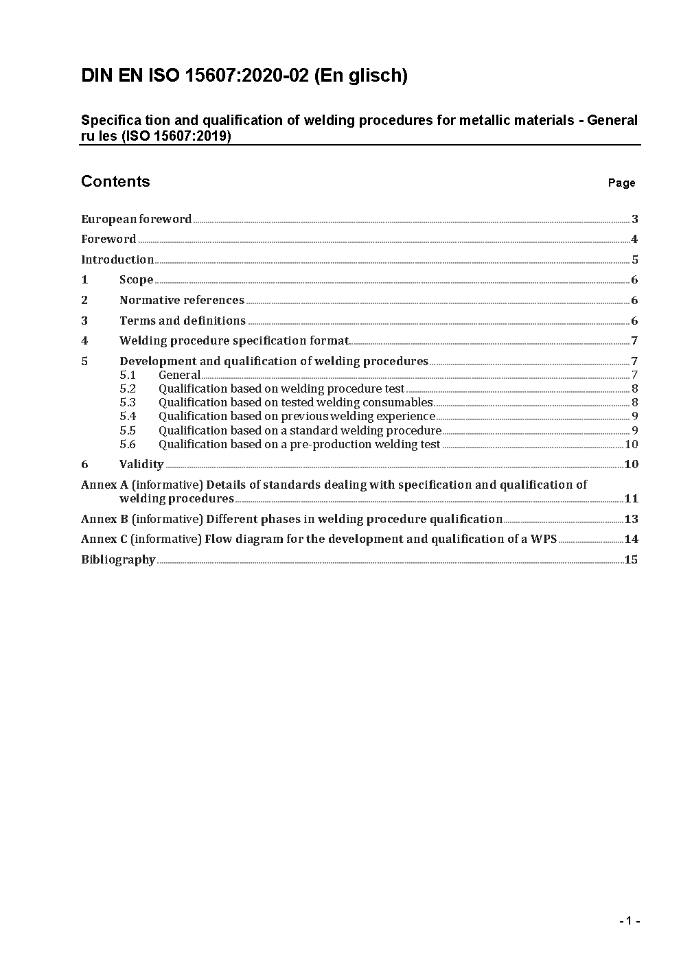 Specification and qualification of welding procedures for metallic materials - General rules (ISO 15607:2003); German version EN ISO 15607:2003