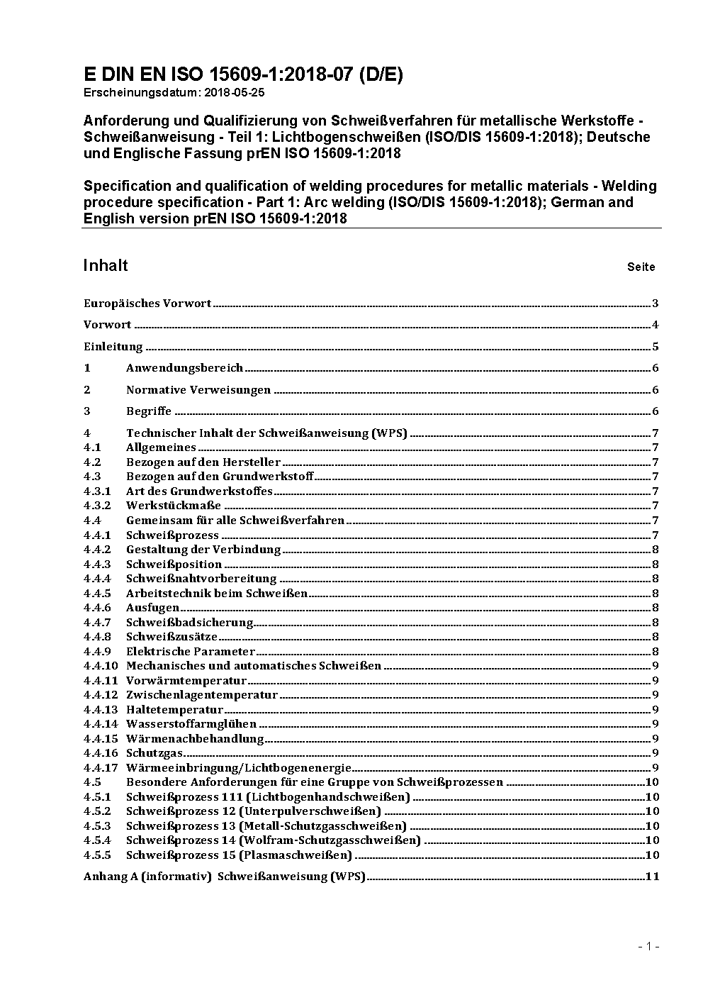 Anforderung und Qualifizierung von Schweißverfahren für metallische Werkstoffe - Schweißanweisung - Teil 1: Lichtbogenschweißen (ISO 15609-1:2004); Deutsche Fassung EN ISO 15609-1:2004