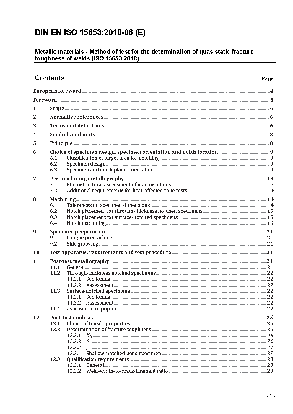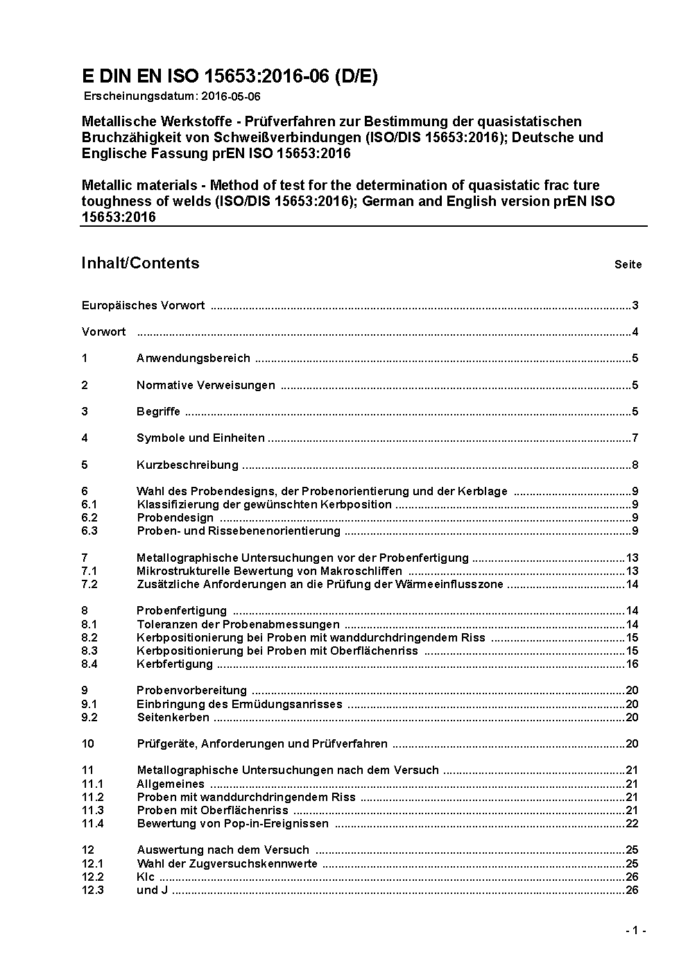 Metallische Werkstoffe - Prüfverfahren zur Bestimmung der quasistatischen Bruchzähigkeit von Schweißverbindungen (ISO 15653:2010); Deutsche Fassung EN ISO 15653:2010