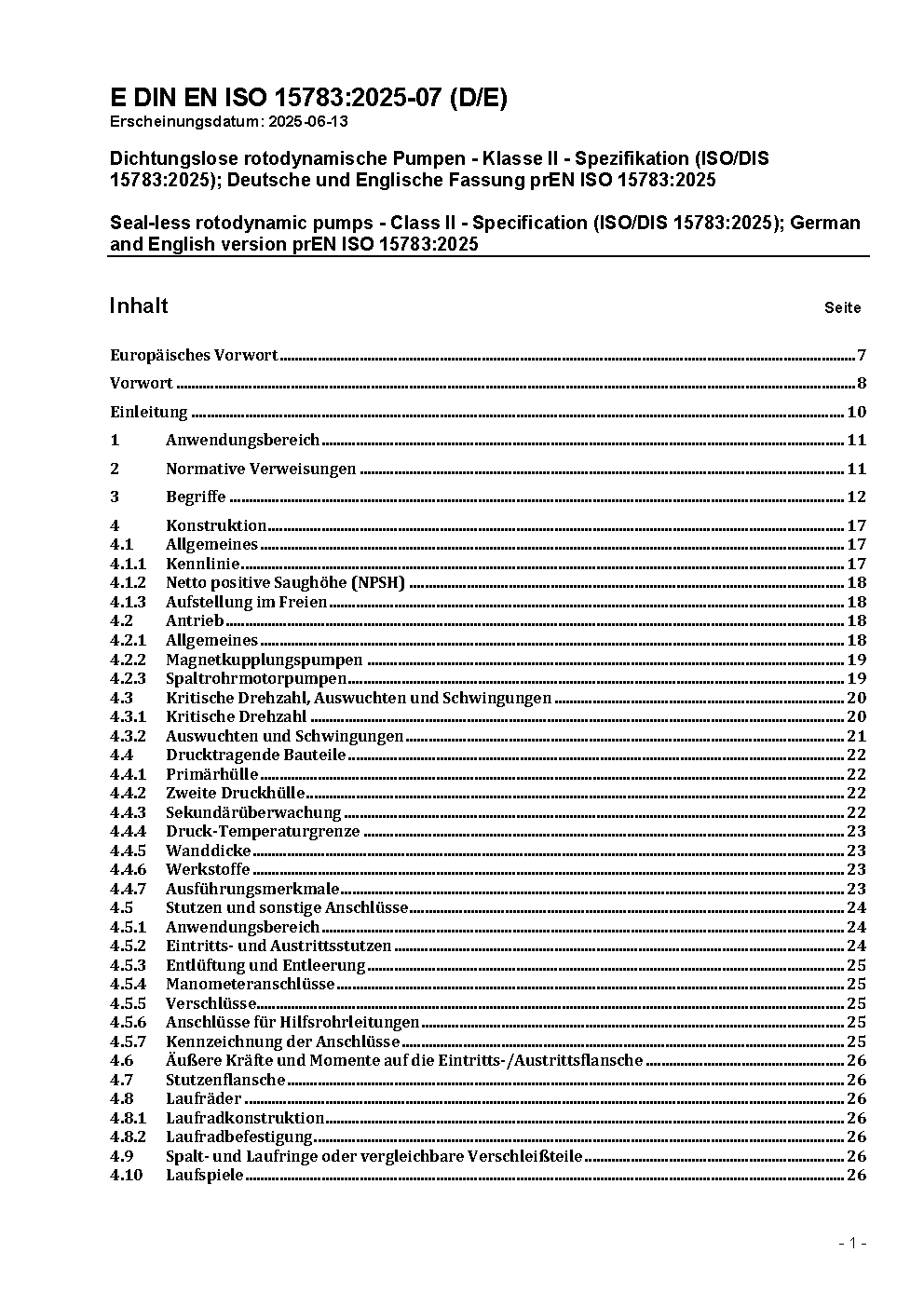 Wellendichtungslose Kreiselpumpen - Klasse II - Technische Anforderungen (ISO 15783:2002 + Amd.1:2008); Deutsche Fassung EN ISO 15783:2003 + A1:2008