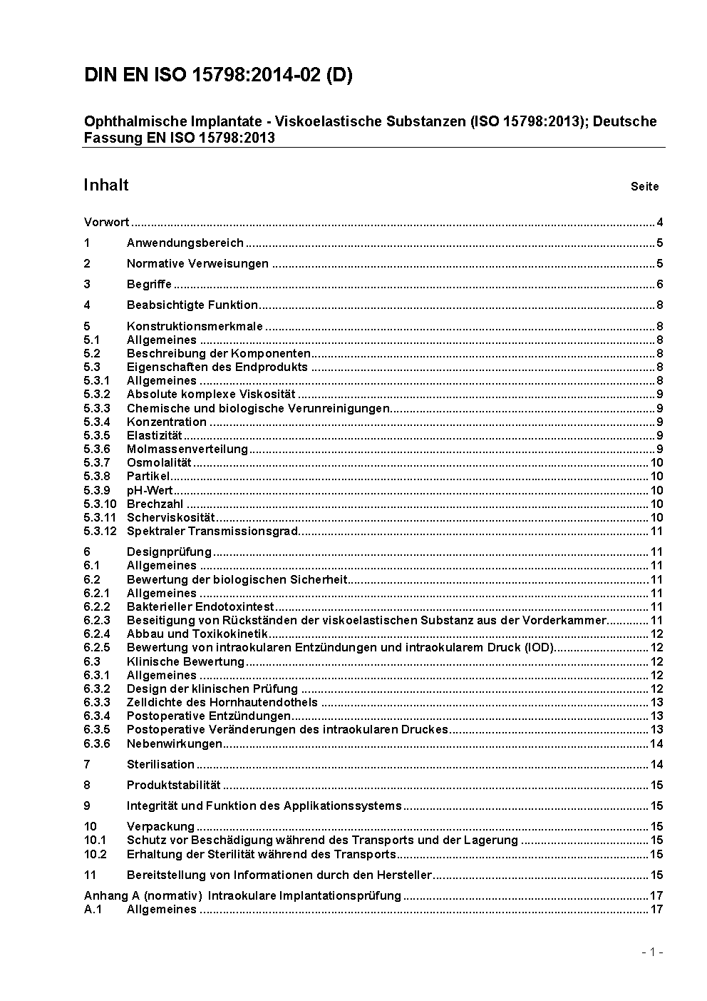 Ophthalmische Implantate - Viskoelastische Substanzen (ISO 15798:2022); Deutsche Fassung EN ISO 15798:2022