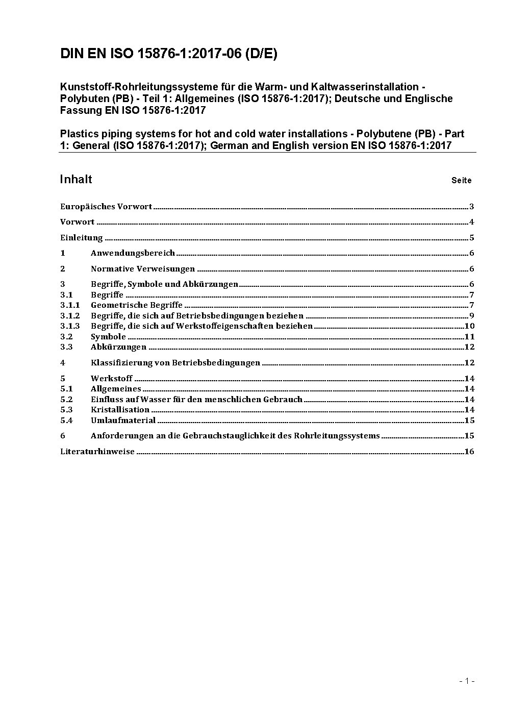 Kunststoff-Rohrleitungssysteme für die Warm- und Kaltwasserinstallation - Polybuten (PB) - Teil 1: Allgemeines (ISO 15876-1:2003); Deutsche Fassung EN ISO 15876-1:2003