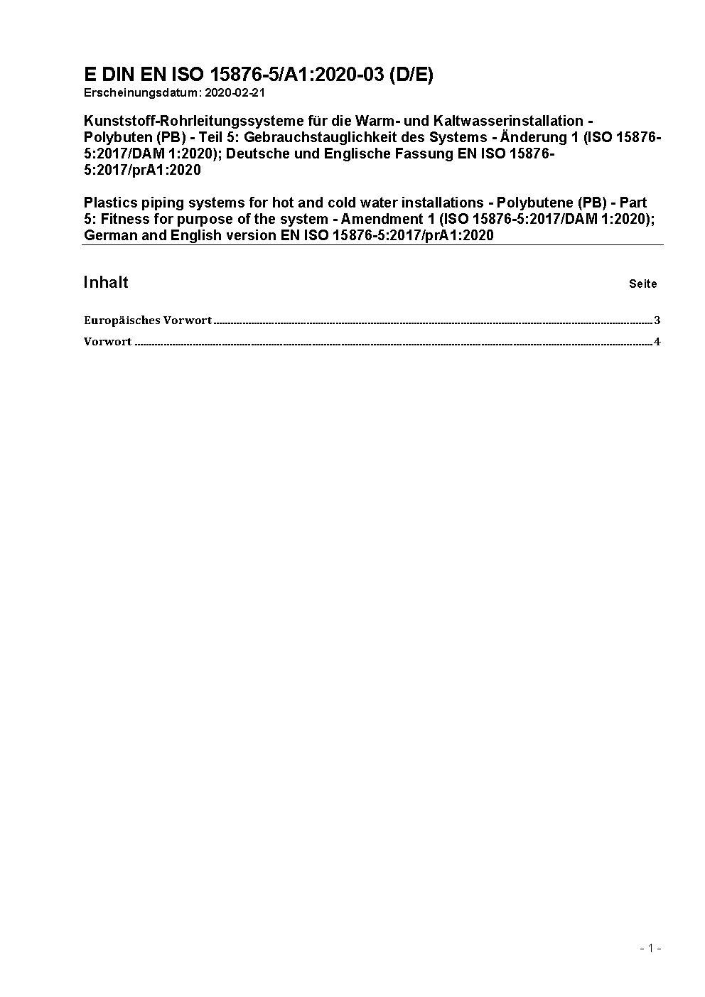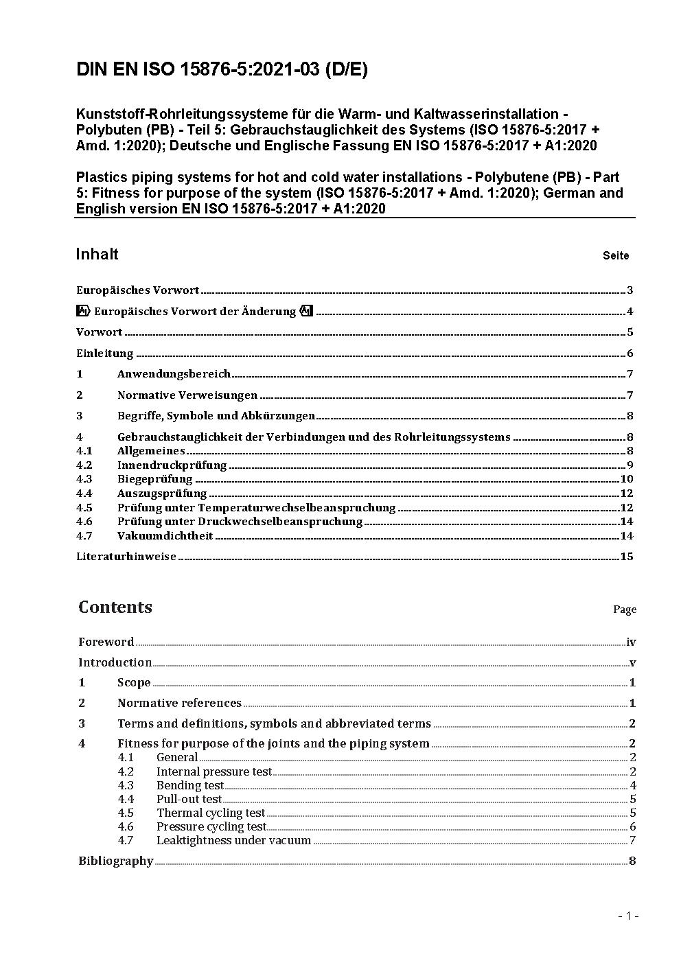 Kunststoff-Rohrleitungssysteme für die Warm- und Kaltwasserinstallation - Polybuten (PB) - Teil 5: Gebrauchstauglichkeit des Systems (ISO 15876-5:2003); Deutsche Fassung EN ISO 15876-5:2003