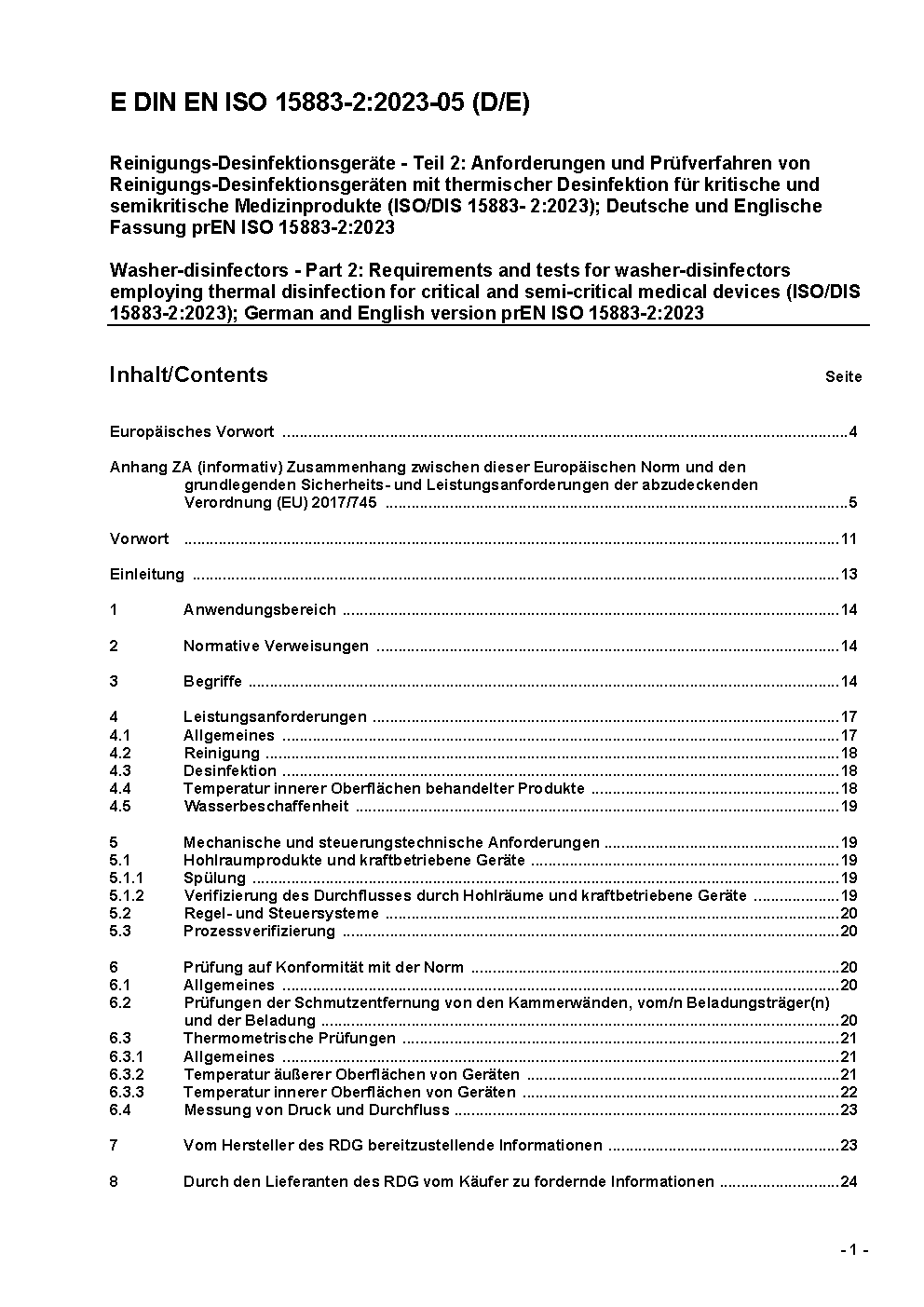 A transition period, as set out in DIN EN ISO 15883-2 (2009-09), exists until 2010-03-21.
