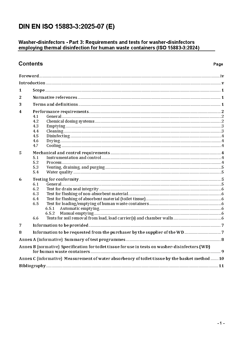 Washer-disinfectors - Part 3: Requirements and tests for washer-disinfectors employing thermal disinfection for human waste containers (ISO 15883-3:2006); German version EN ISO 15883-3:2006.