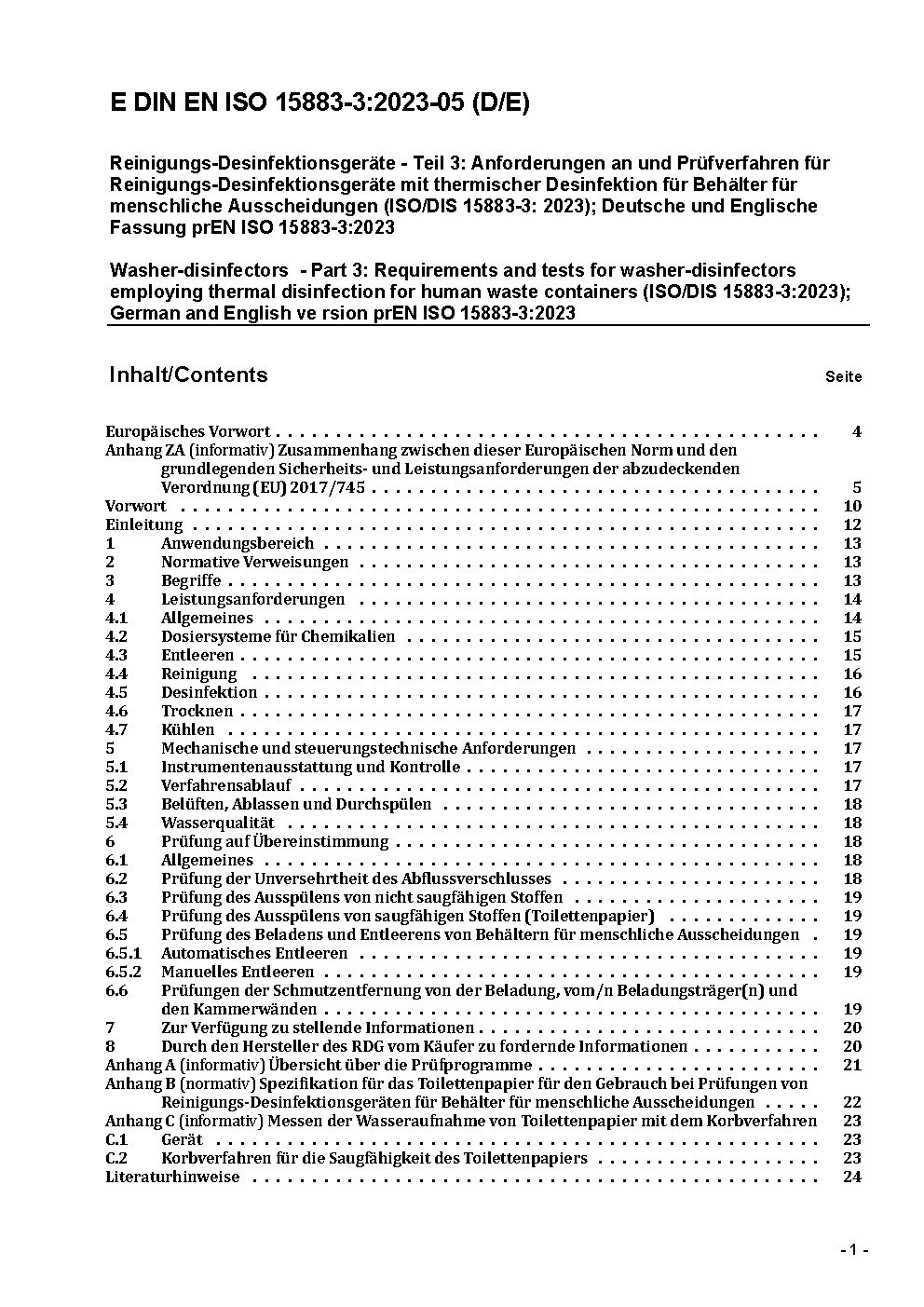 A transition period, as set out in DIN EN ISO 15883-3 (2009-09), exists until 2010-03-21.
