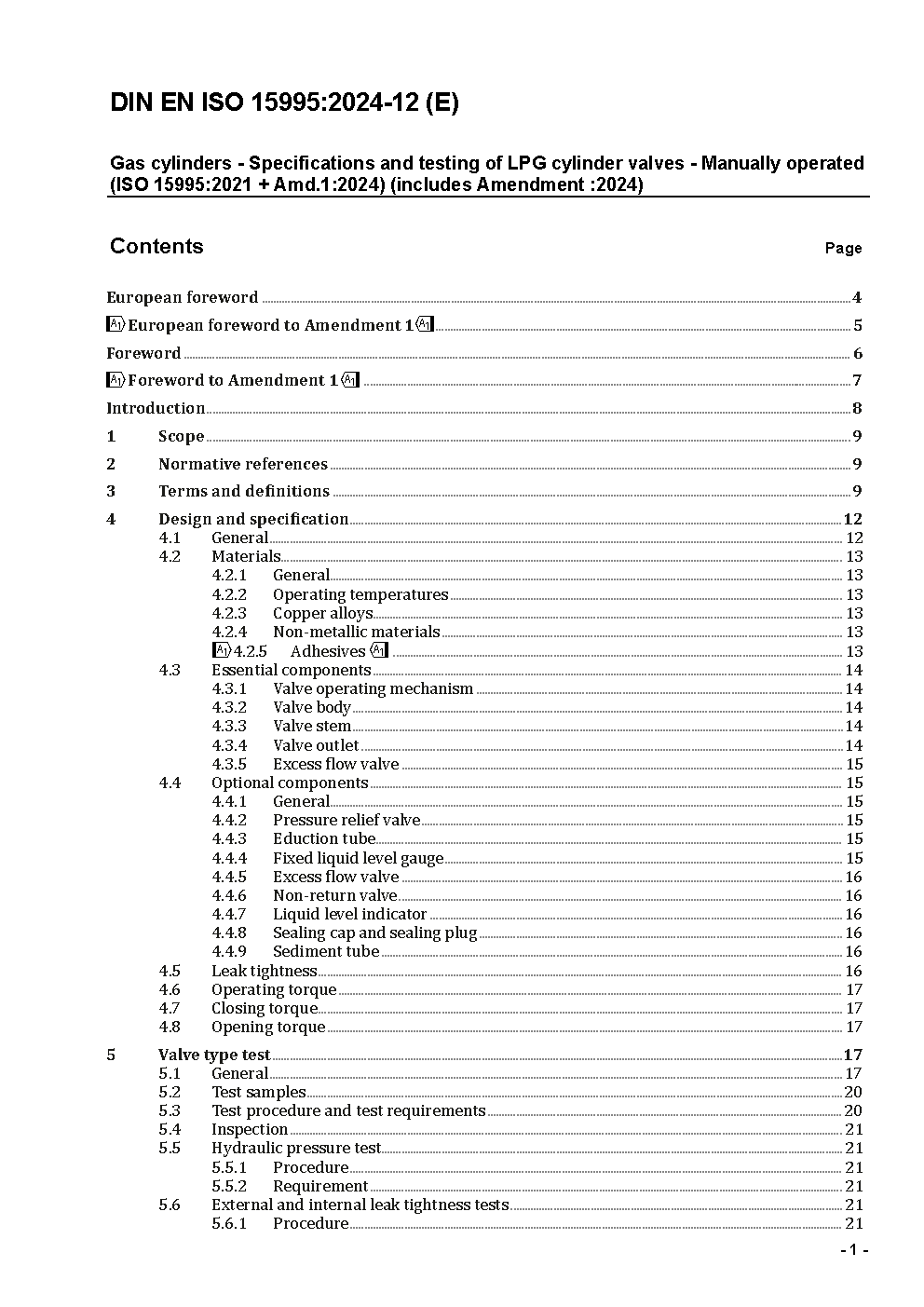 Gas cylinders - Specifications and testing of LPG cylinder valves - Manually operated - Amendment 1 (ISO 15995:2021/DAM 1:2023); German and English version EN ISO 15995:2021/prA1:2023