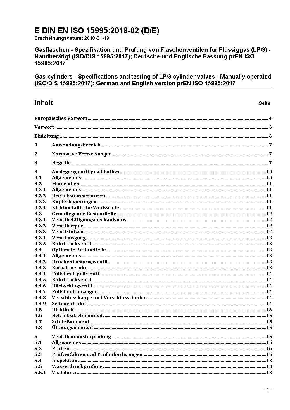 Gasflaschen - Spezifikation und Prüfung von Flaschenventilen für Flüssiggas (LPG) - Handbetätigt - Änderung 1 (ISO 15995:2021/DAM 1:2023); Deutsche und Englische Fassung EN ISO 15995:2021/prA1:2023
