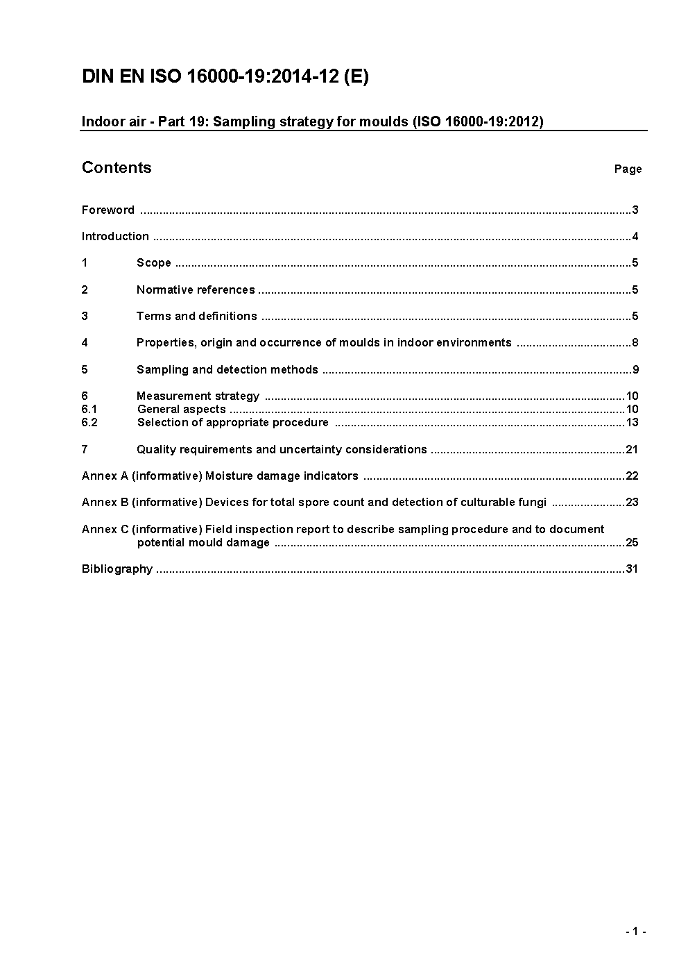 Innenraumluftverunreinigungen - Teil 19: Probenahmestrategie für Schimmelpilze (ISO 16000-19:2012); Deutsche Fassung EN ISO 16000-19:2014