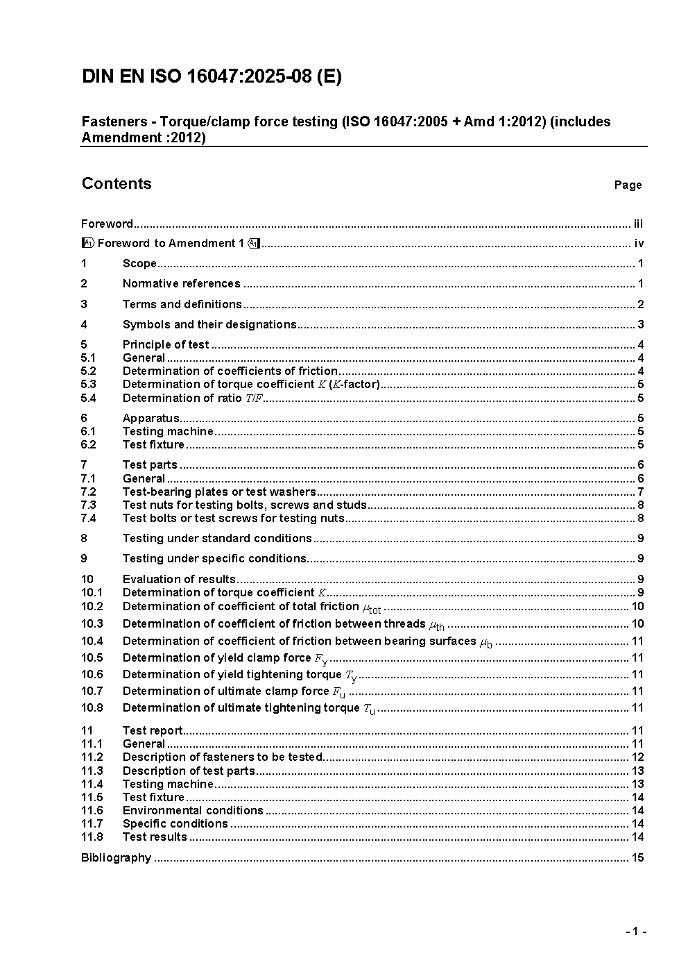 Fasteners - Torque/clamp force testing (ISO 16047:2005 + Amd 1:2012); German version EN ISO 16047:2005 + A1:2012