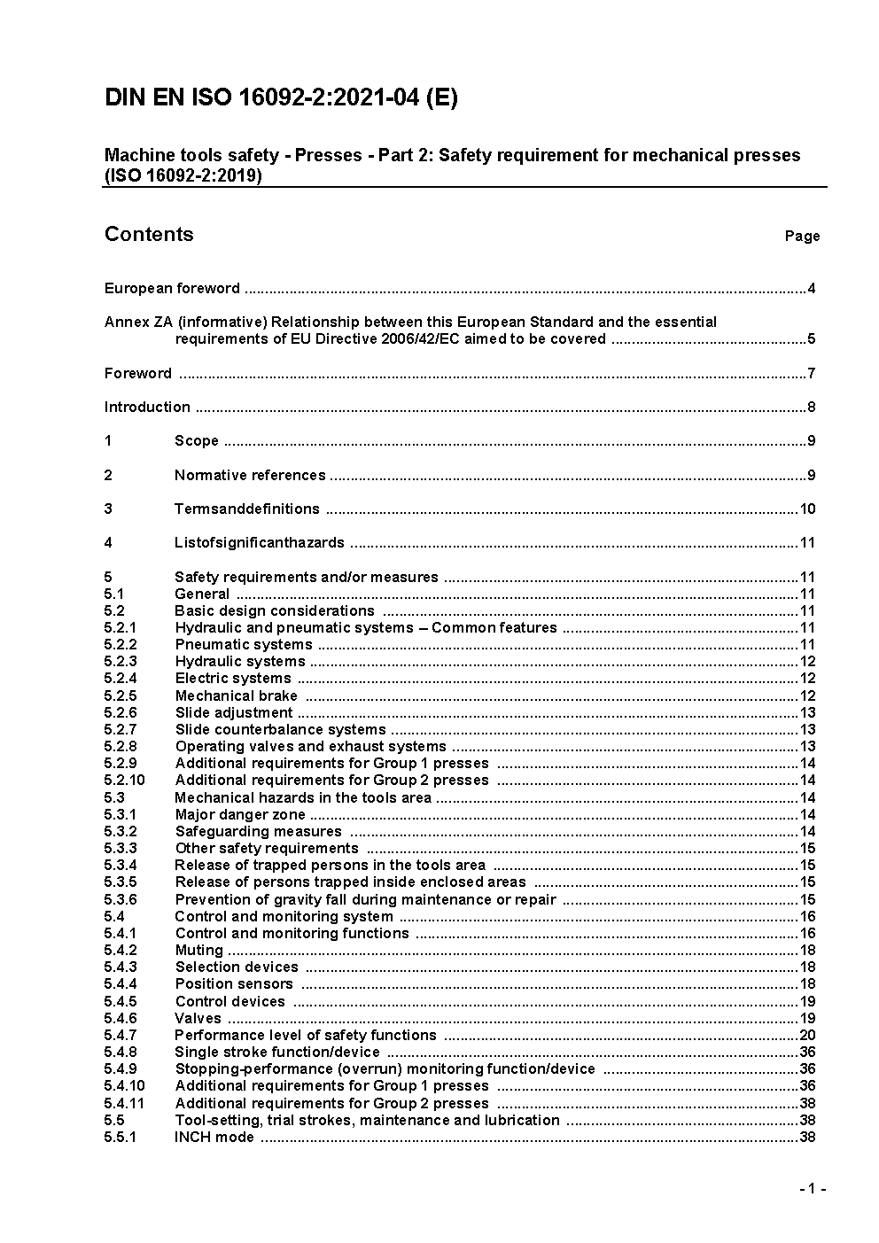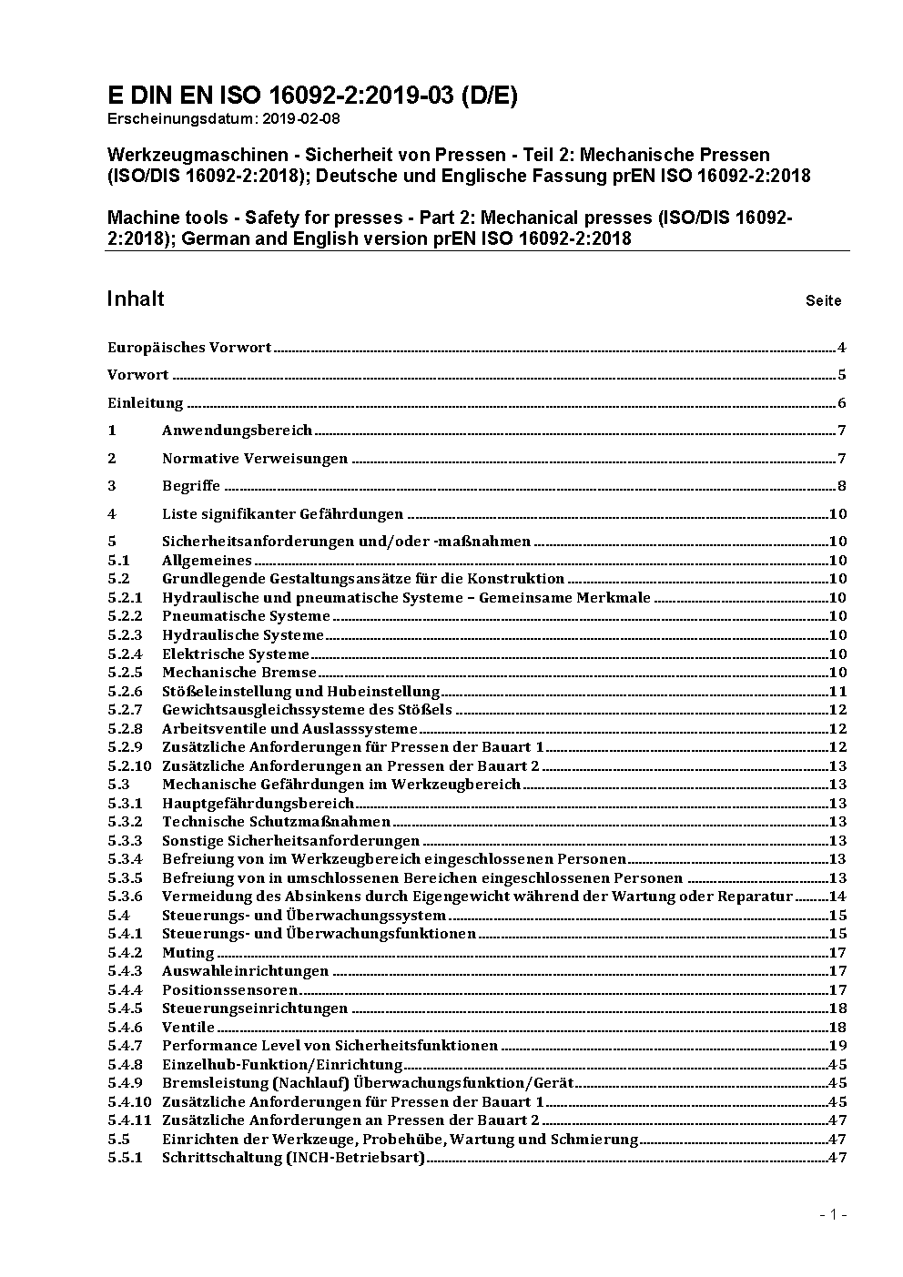 Machine tools - Safety for presses - Part 2: Mechanical presses (ISO/DIS 16092-2:2018); German and English version prEN ISO 16092-2:2018