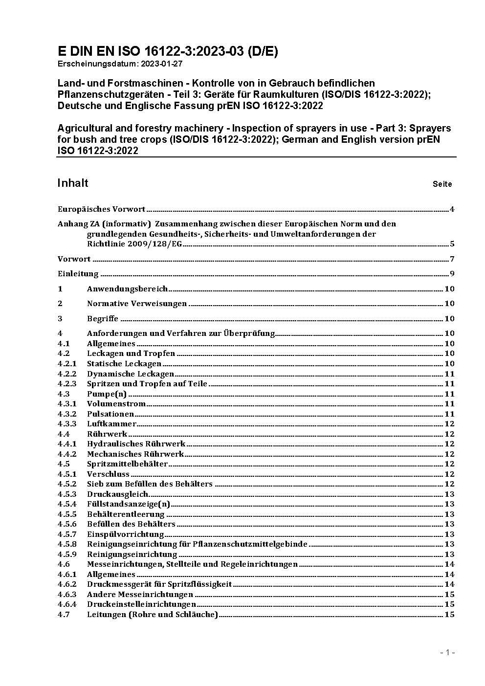 Agricultural and forestry machinery - Inspection of sprayers in use - Part 3: Sprayers for bush and tree crops (ISO 16122-3:2015); German version EN ISO 16122-3:2015