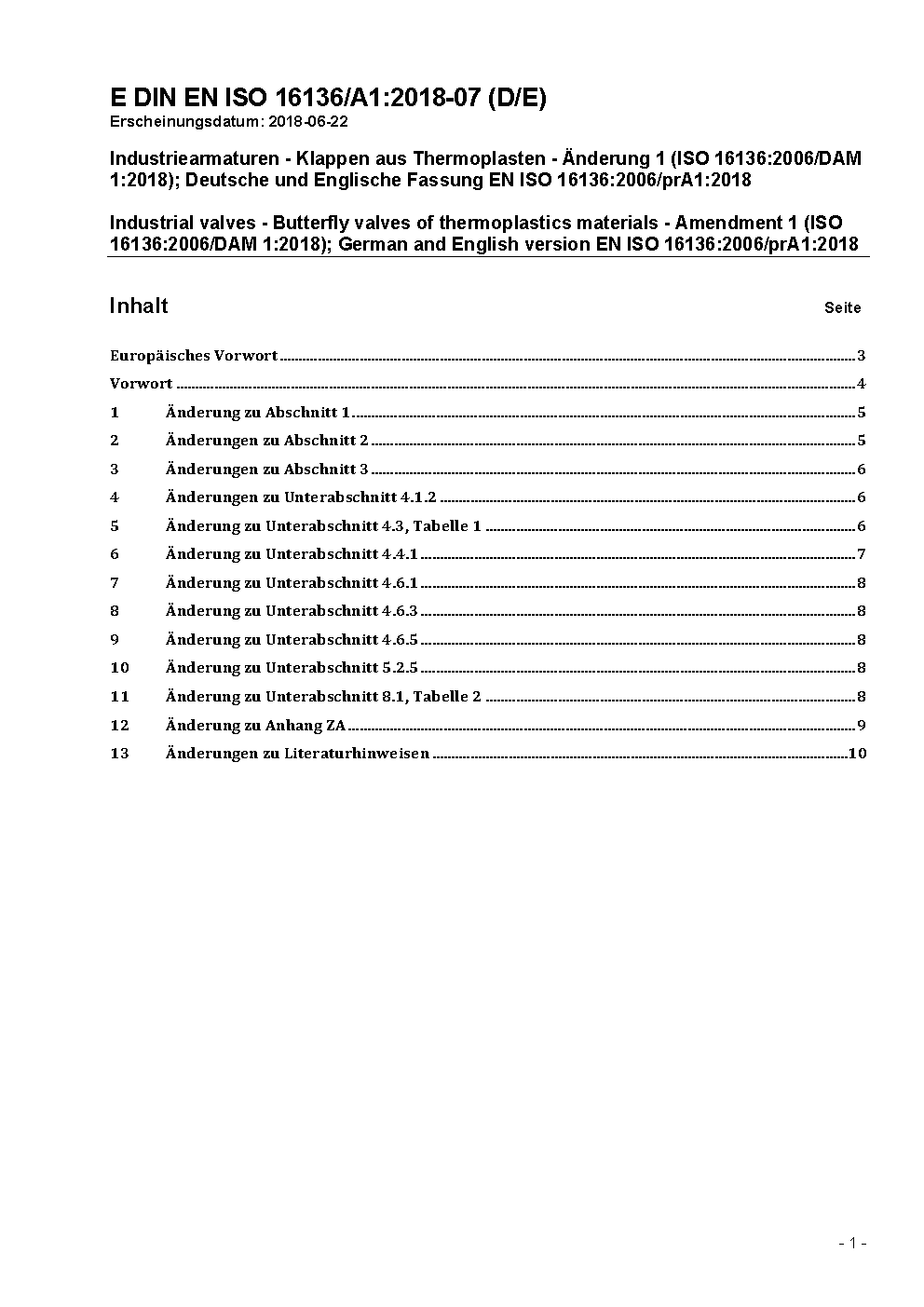 Industriearmaturen - Klappen aus Thermoplasten (ISO 16136:2006); Deutsche Fassung EN ISO 16136:2006