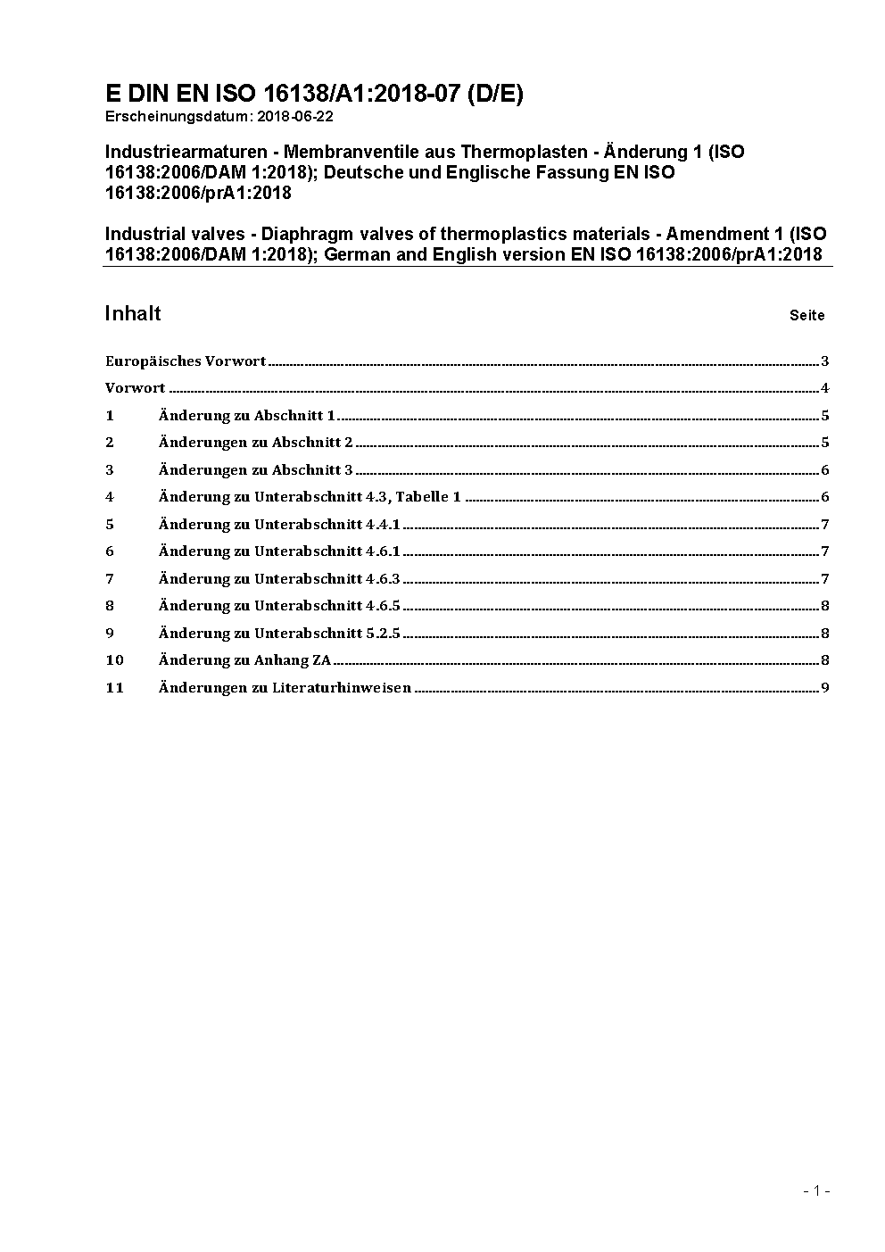 Industriearmaturen - Membranventile aus Thermoplasten (ISO 16138:2006); Deutsche Fassung EN ISO 16138:2006, Berichtigungen zu DIN EN ISO 16138:2006-06