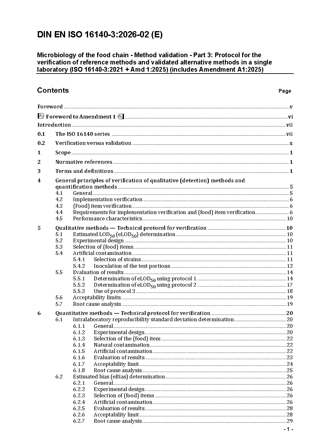 Microbiology of the food chain - Method validation - Part 3: Protocol for the verification of reference methods and validated alternative methods in a single laboratory - Amendment 1: Validated identification methods of microorganisms (ISO 16140-3:2021/DAM 1:2024); German and English version EN ISO 16140-3:2021/prA1:2024