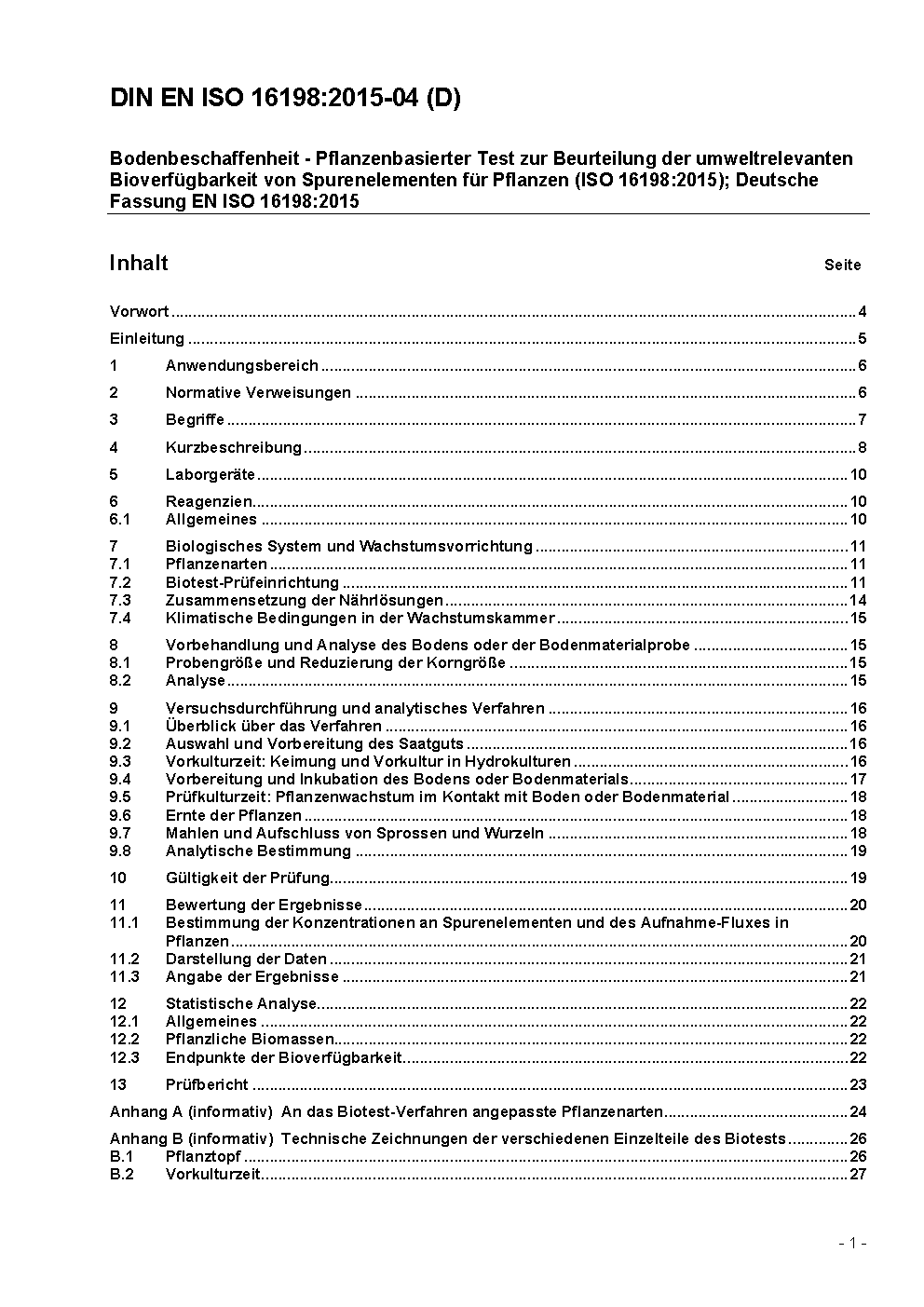 Soil quality - Plant-based biotest to assess the environmental bioavailability of trace elements to plants (ISO/DIS 16198:2013); German version prEN ISO 16198:2013