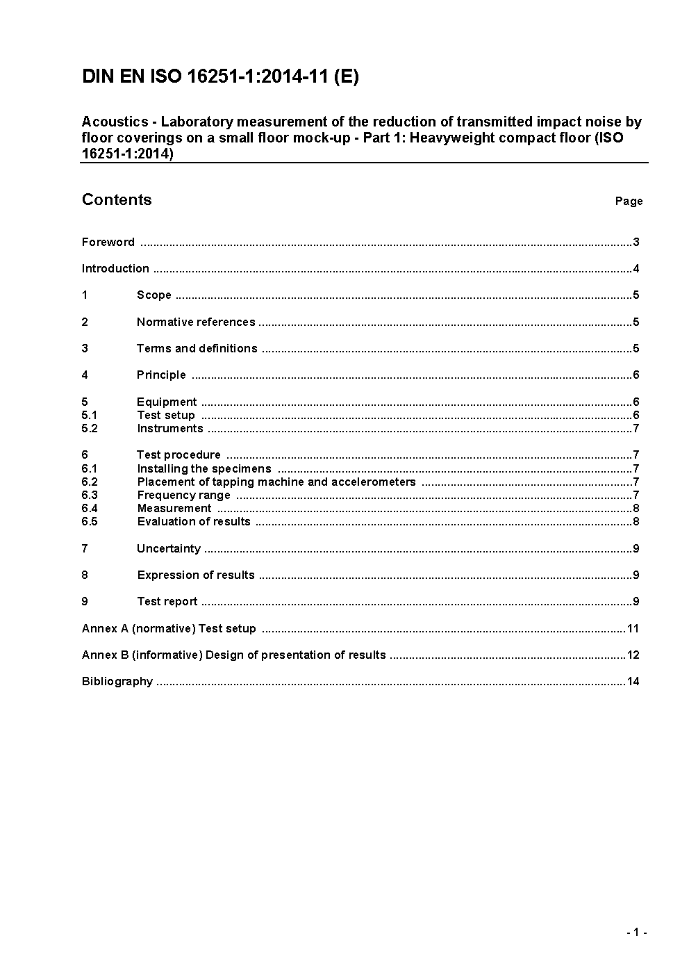 Akustik - Labormessung der Trittschallminderung von Deckenauflagen auf kleinflächigen Prüfdeckennachbildungen - Teil 1: Schwere Massivdecke (ISO/DIS 16251-1:2012); Deutsche Fassung prEN ISO 16251-1:2012