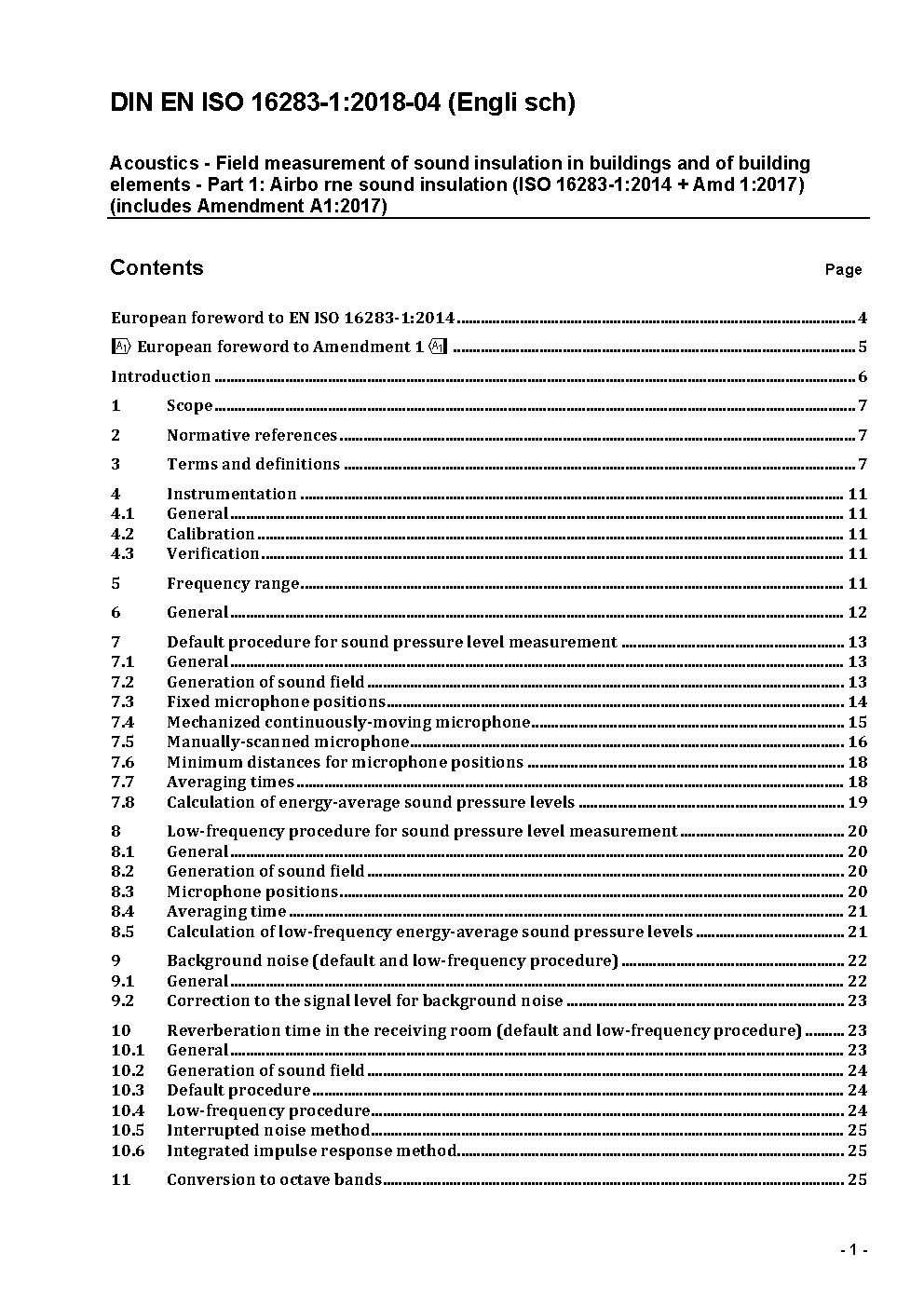 Akustik - Messung der Schalldämmung in Gebäuden und von Bauteilen am Bau - Teil 1: Luftschalldämmung (ISO 16283-1:2014 + Amd 1:2017); Deutsche Fassung EN ISO 16283-1:2014 + A1:2017