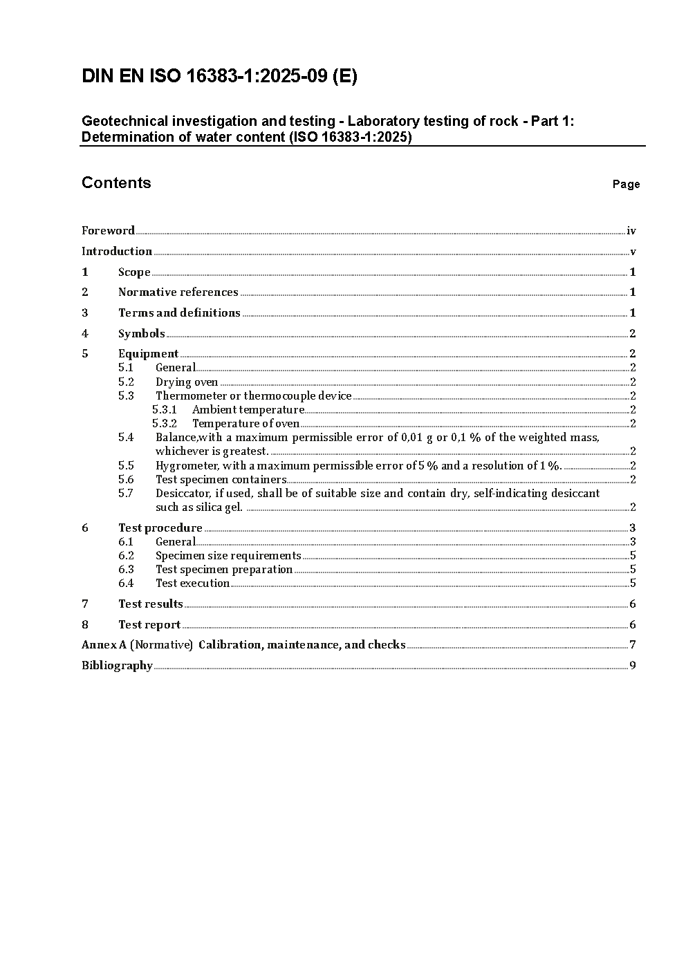 Geotechnical investigation and testing - Laboratory testing of rock - Part 1: Determination of water content (ISO/DIS 16383-1:2024); German and English version prEN ISO 16383-1:2024