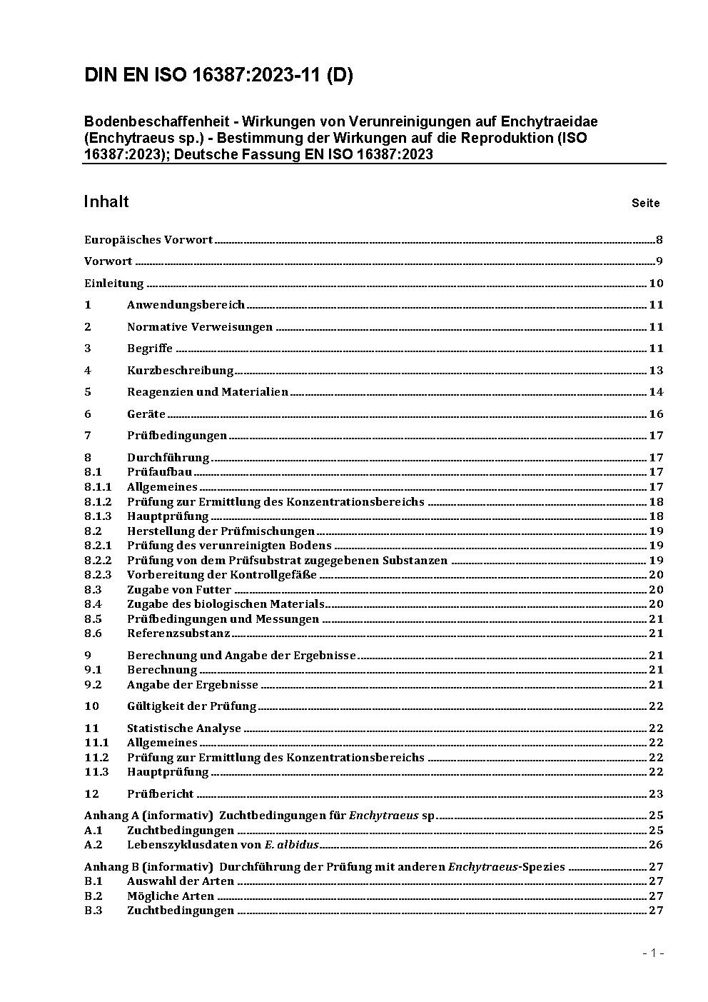Bodenbeschaffenheit - Wirkungen von Schadstoffen auf Enchytraeidae (Enchytraeus sp.) - Bestimmung der Wirkungen auf die Reproduktion (ISO/DIS 16387:2012); Deutsche Fassung prEN ISO 16387:2012