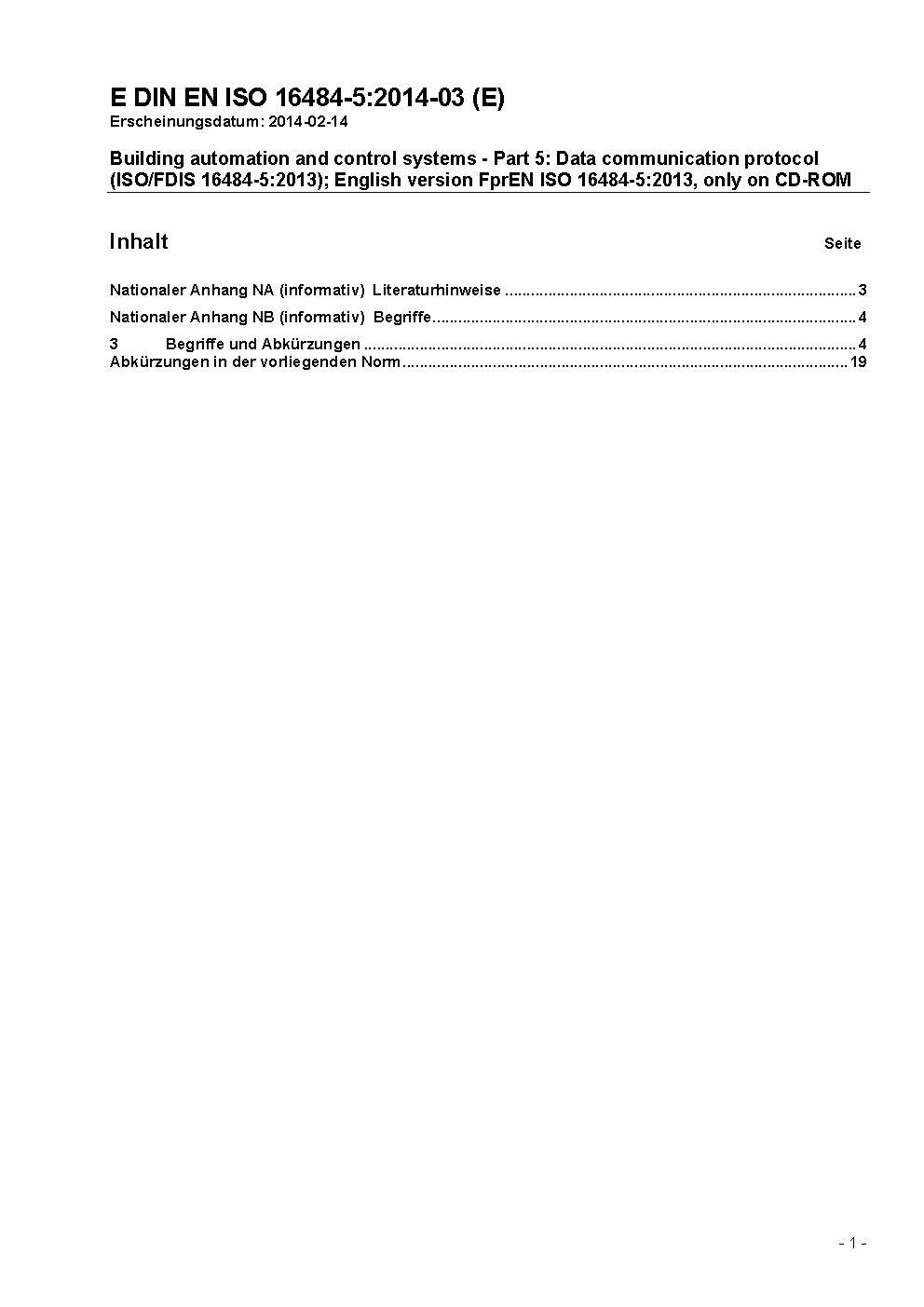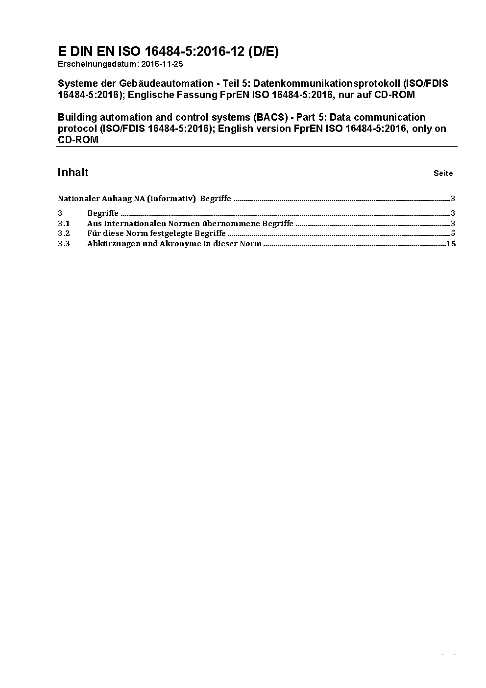 Systeme der Gebäudeautomation - Teil 5: Datenkommunikationsprotokoll (ISO 16484-5:2003); Englische Fassung EN ISO 16484-5:2003 / Achtung: CD-ROM