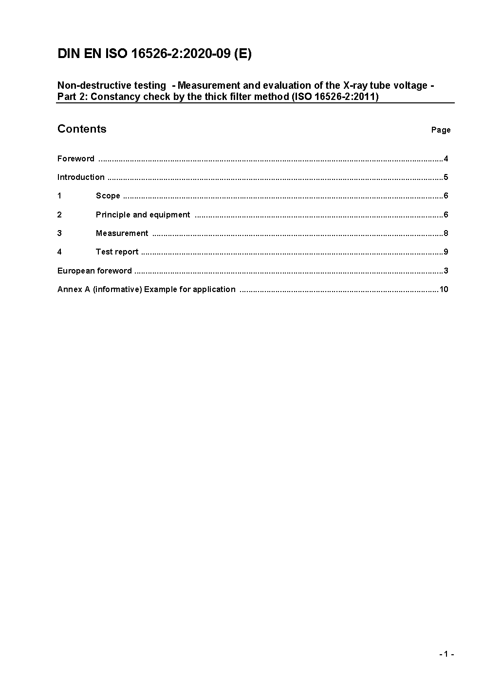 Zerstörungsfreie Prüfung - Messung und Bewertung der Röntgenröhrenspannung - Teil 2: Konstanzprüfung mit dem Dickfilter-Verfahren (ISO 16526-2:2011); Deutsche EN ISO 16526-2:2020