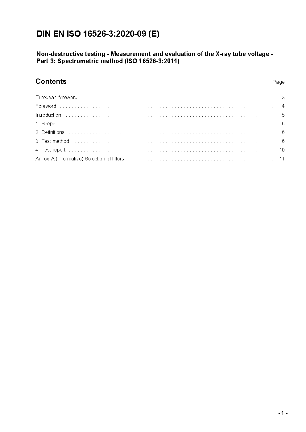 Zerstörungsfreie Prüfung - Messung und Bewertung der Röntgenröhrenspannung - Teil 3: Spektrometer-Verfahren (ISO 16526-3:2011); Deutsche Fassung EN ISO 16526-3:2020
