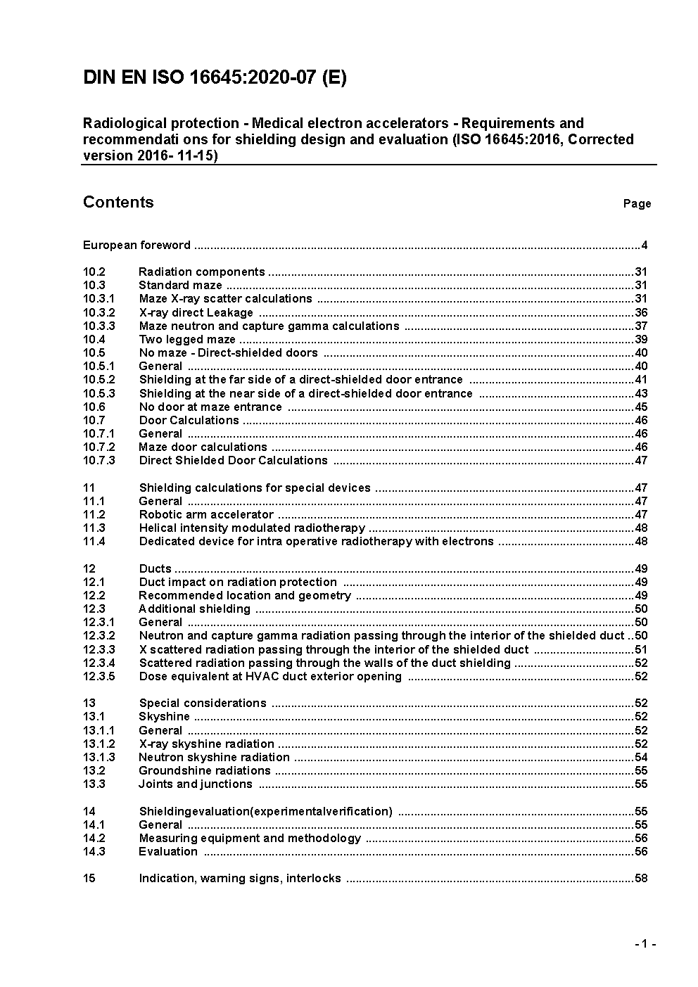 Strahlenschutz - Medizinische Elektronenbeschleuniger-Anlagen - Anforderungen und Empfehlungen an die Ausführung der Abschirmung und deren Bewertung (ISO 16645:2016); Deutsche und Englische Fassung prEN ISO 16645:2019