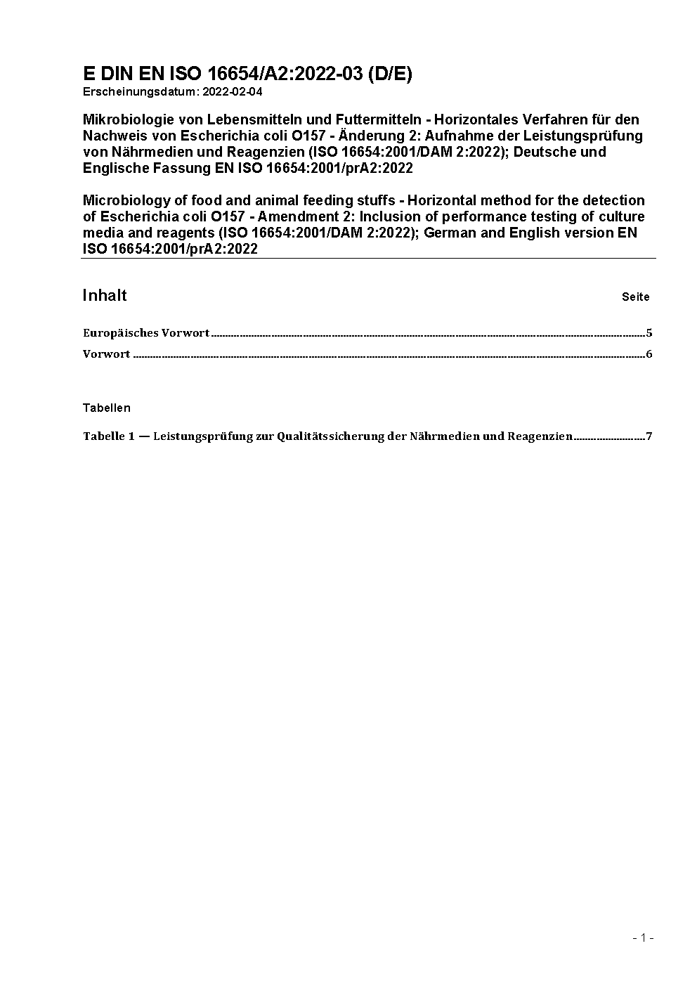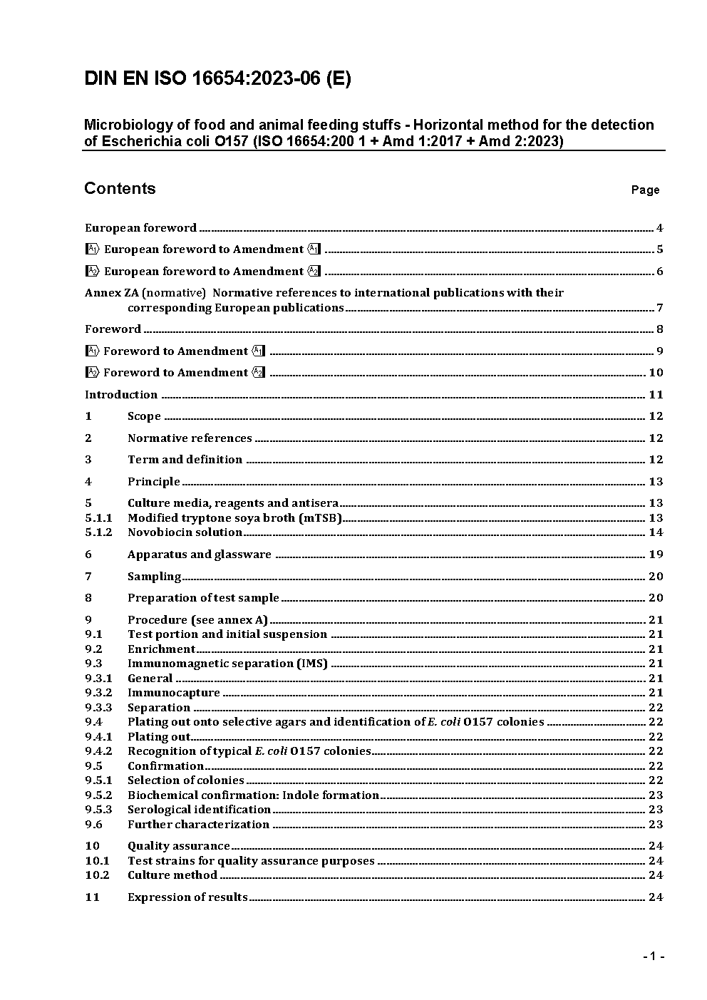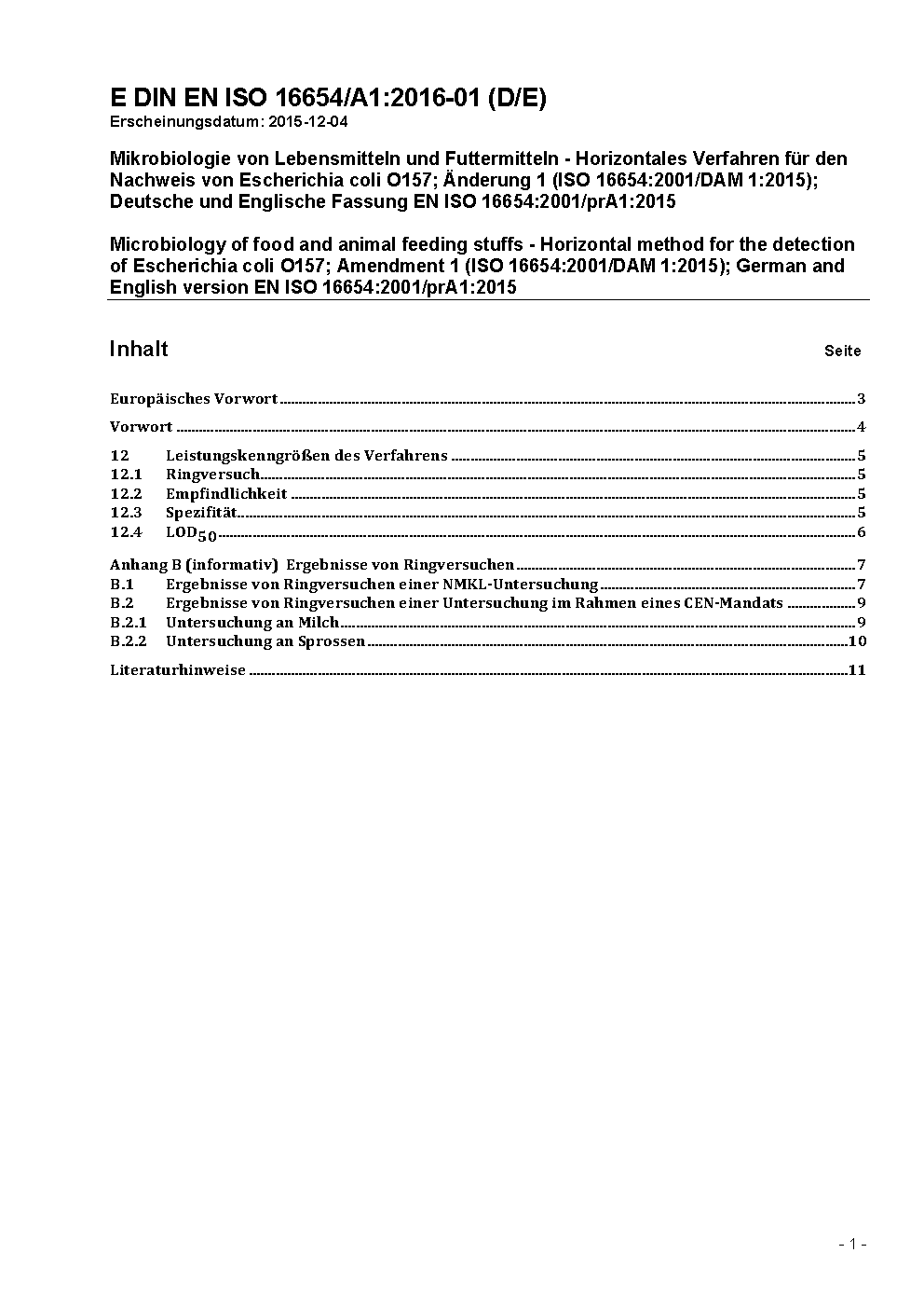 Mikrobiologie von Lebensmitteln und Futtermitteln - Horizontales Verfahren für den Nachweis von Escherichia coli O157 (ISO 16654:2001 + Amd 1:2017); Deutsche Fassung EN ISO 16654:2001 + A1:2017