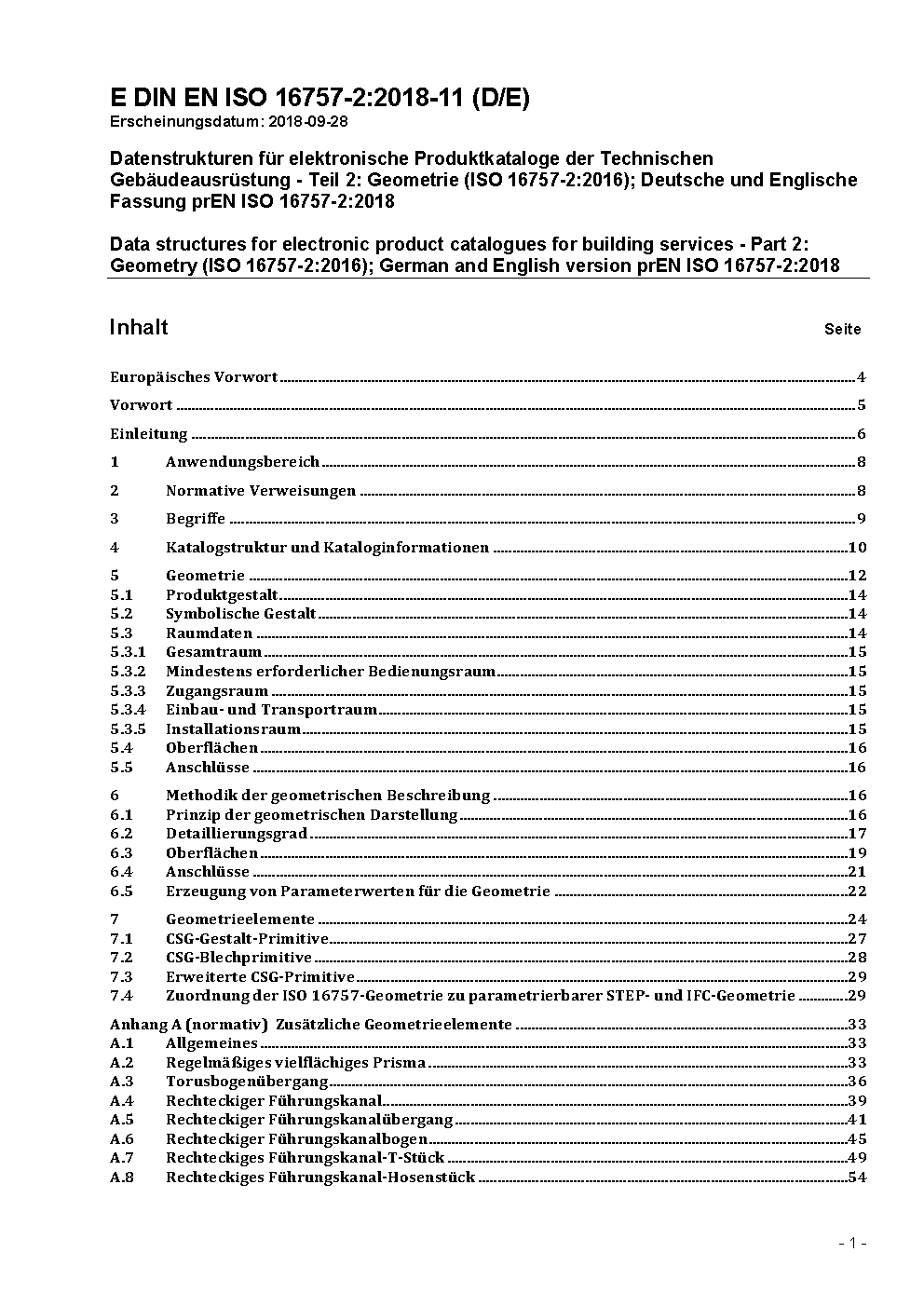 Datenstrukturen für elektronische Produktkataloge der Technischen Gebäudeausrüstung - Teil 2: Geometrie (ISO 16757-2:2016); Deutsche und Englische Fassung prEN ISO 16757-2:2018