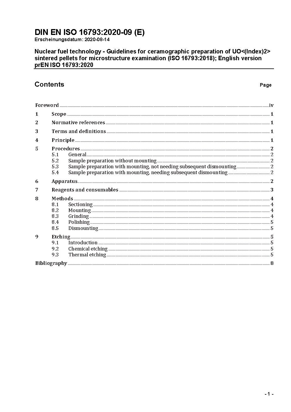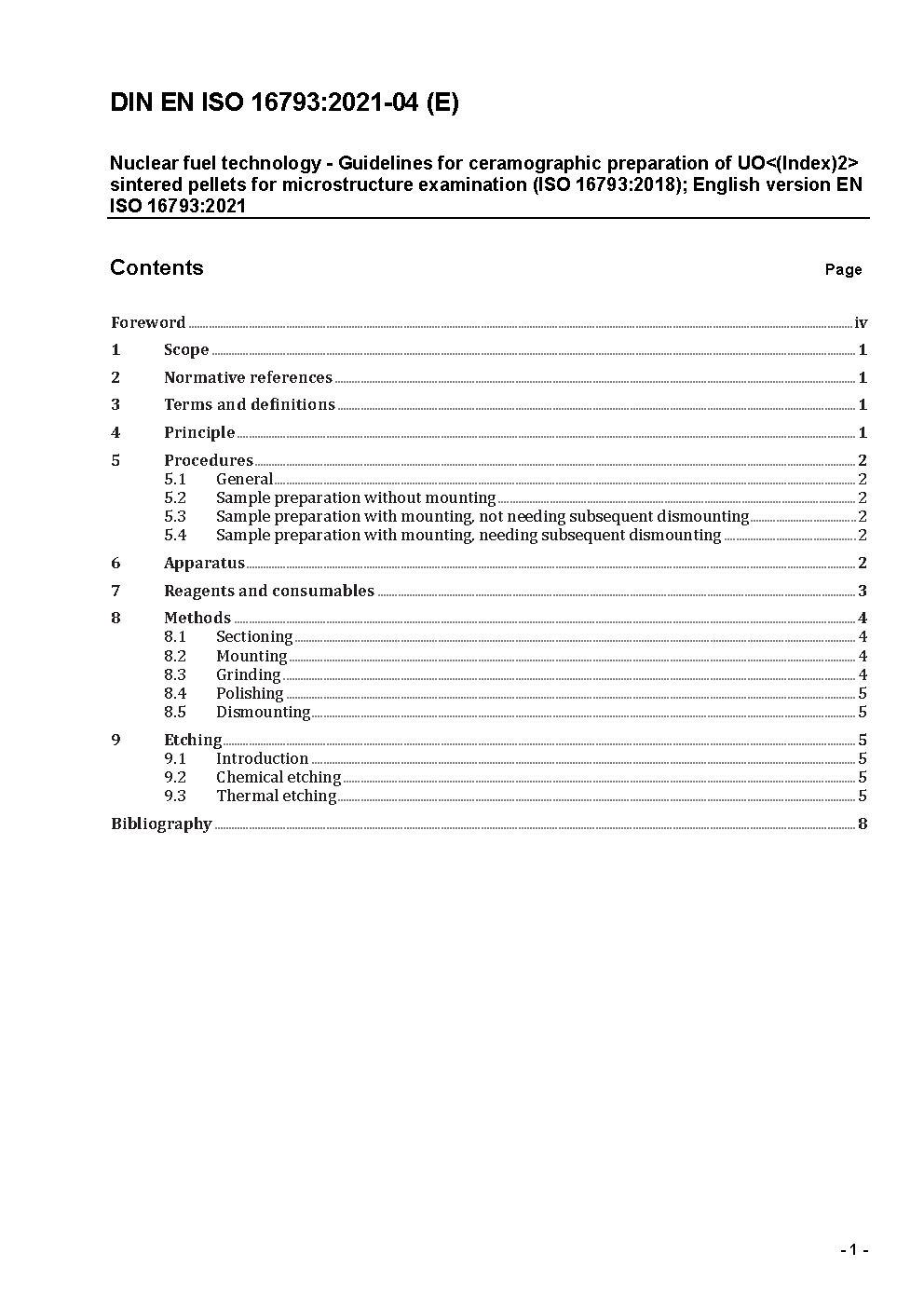 Nuclear fuel technology - Guidelines for ceramographic preparation of UO<(Index)2> sintered pellets for microstructure examination (ISO 16793:2018); English version EN ISO 16793:2021