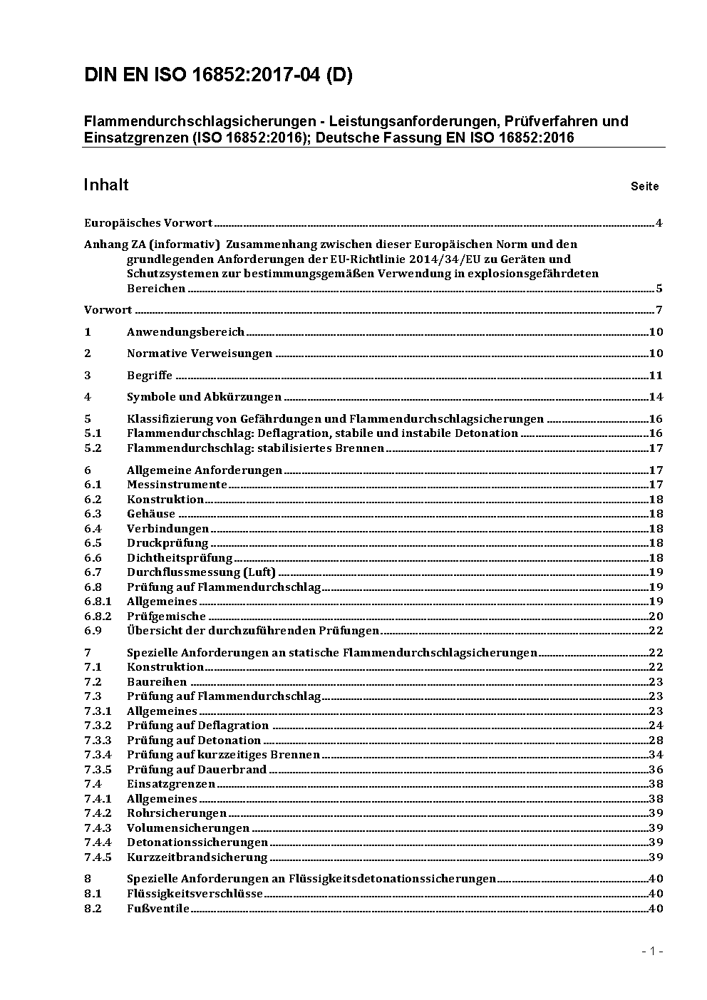 Flame arresters - Performance requirements, test methods and limits for use (ISO/DIS 16852:2014); German version prEN ISO 16852:2014
