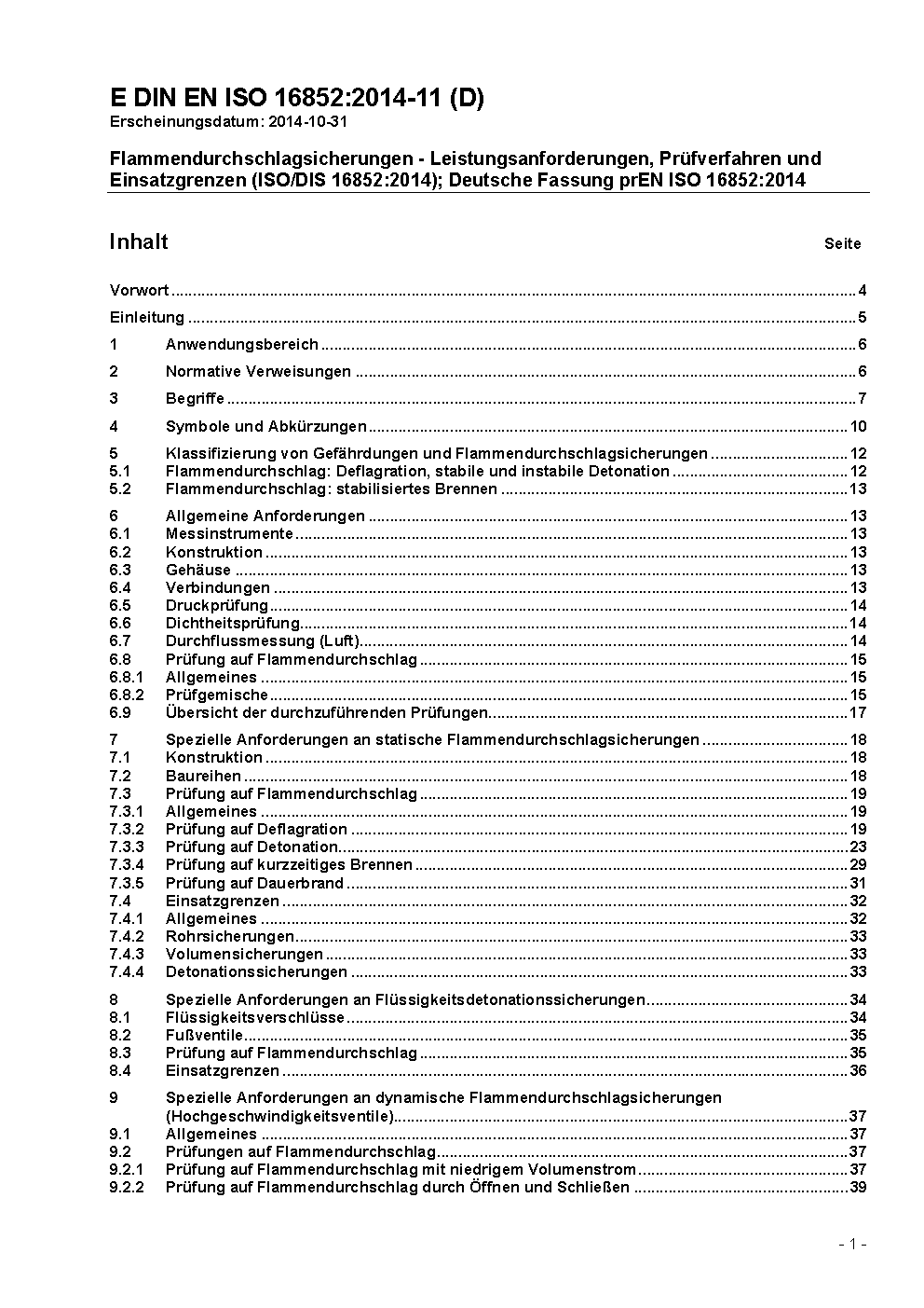 Flammendurchschlagsicherungen - Leistungsanforderungen, Prüfverfahren und Einsatzgrenzen (ISO/DIS 16852:2014); Deutsche Fassung prEN ISO 16852:2014